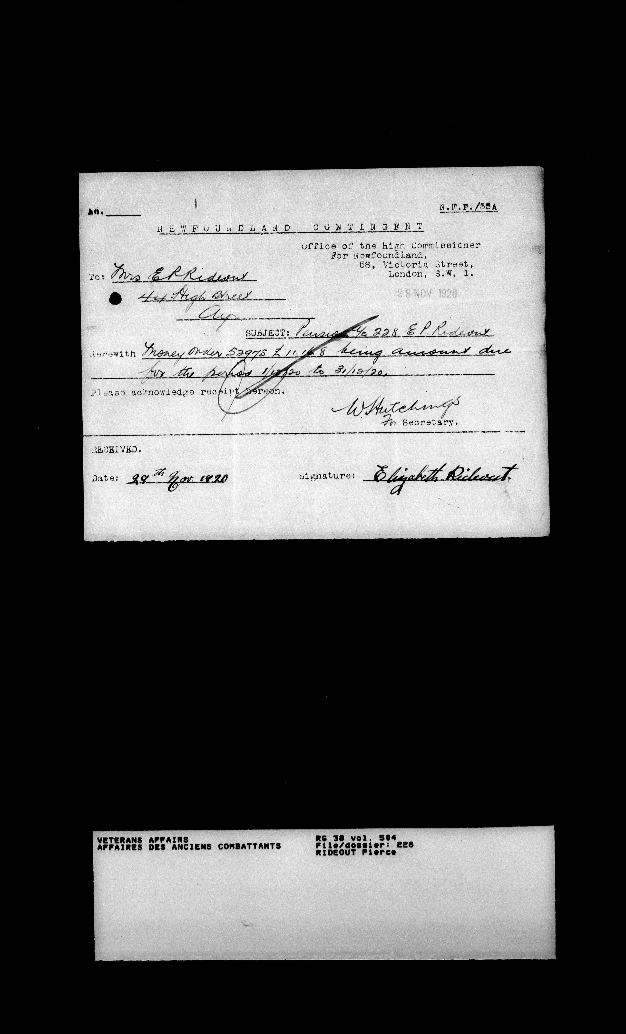 Military service files for members of the Royal Newfoundland Regiment and bandsmen and the Newfoundland Forestry Corps (1914-1919) - 18036