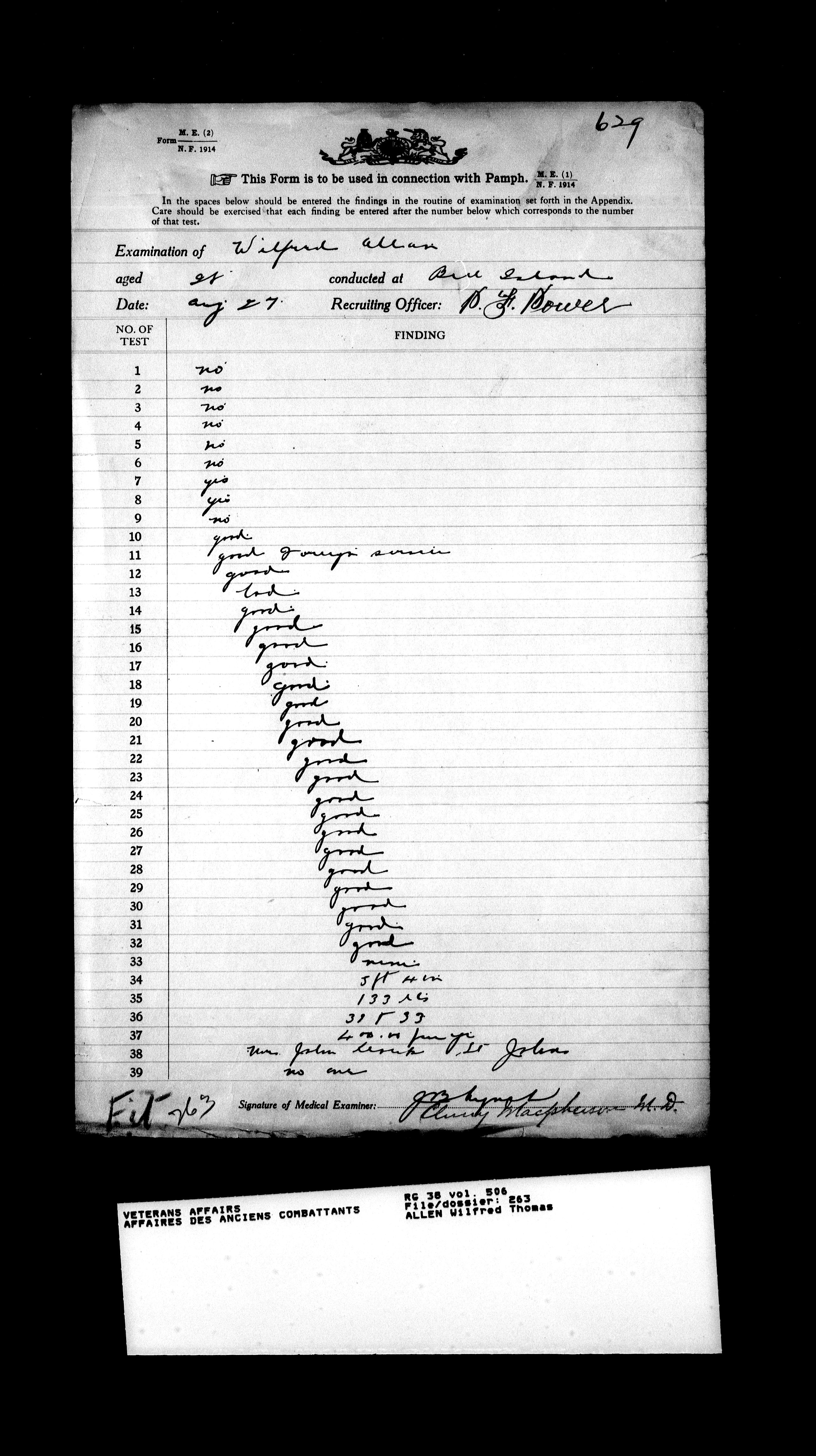 Military service files for members of the Royal Newfoundland Regiment and bandsmen and the Newfoundland Forestry Corps (1914-1919) - 18037