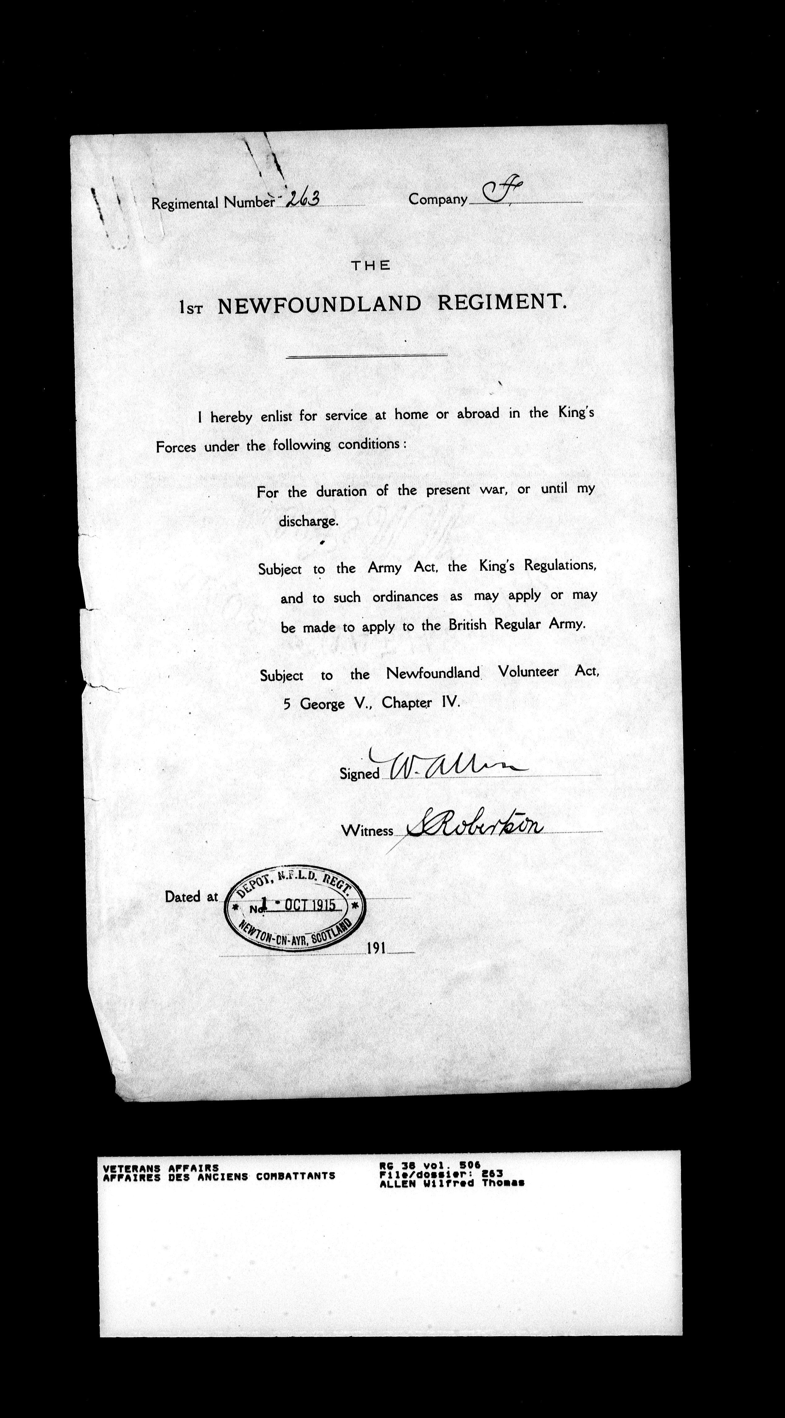 Military service files for members of the Royal Newfoundland Regiment and bandsmen and the Newfoundland Forestry Corps (1914-1919) - 18037
