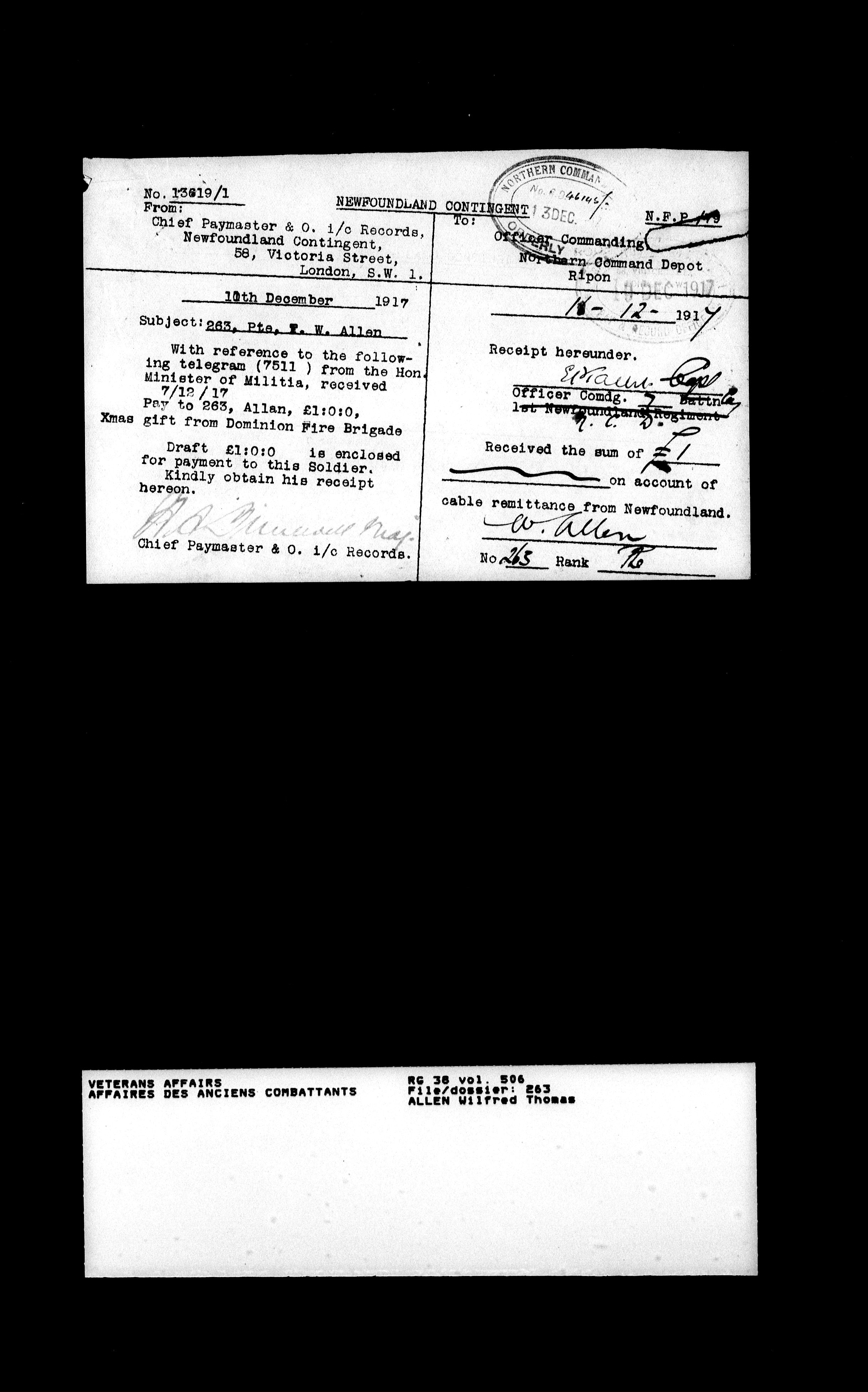 Military service files for members of the Royal Newfoundland Regiment and bandsmen and the Newfoundland Forestry Corps (1914-1919) - 18037