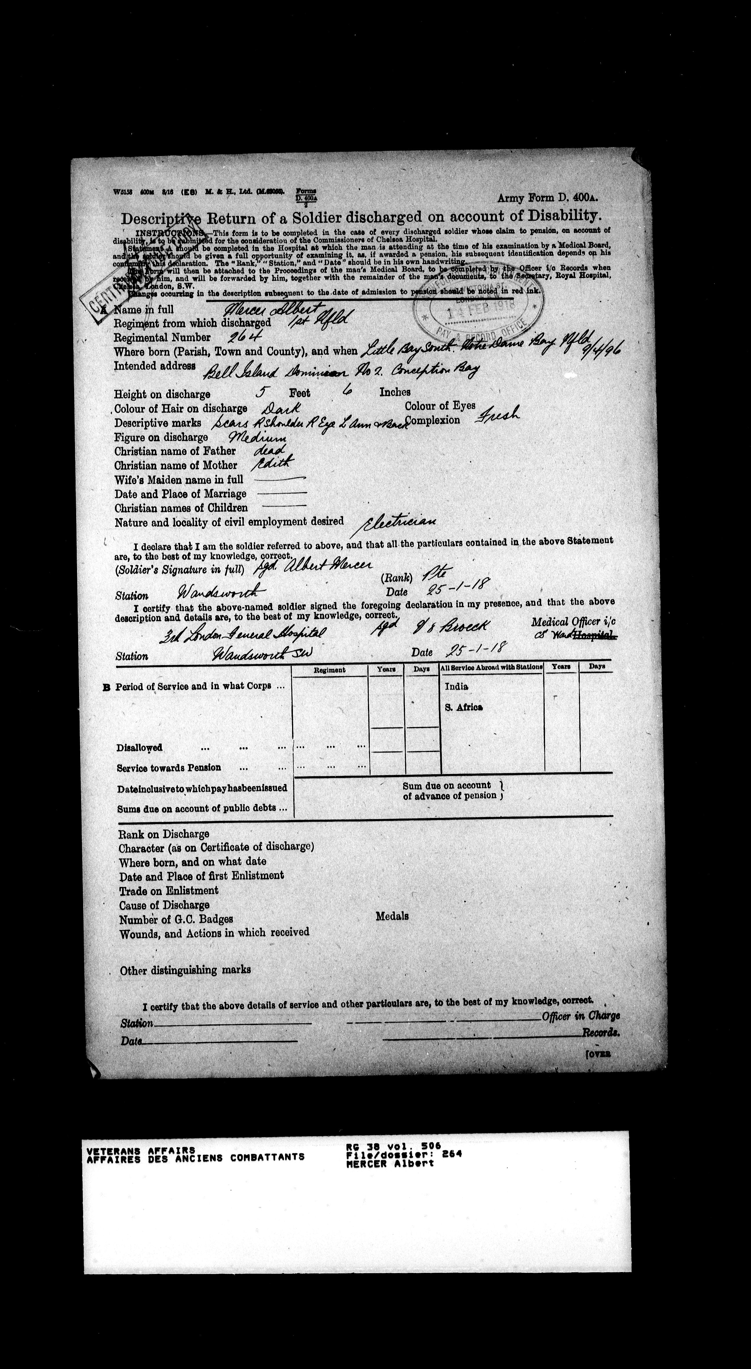 Royal Newfoundland Regiment service files : T-18038