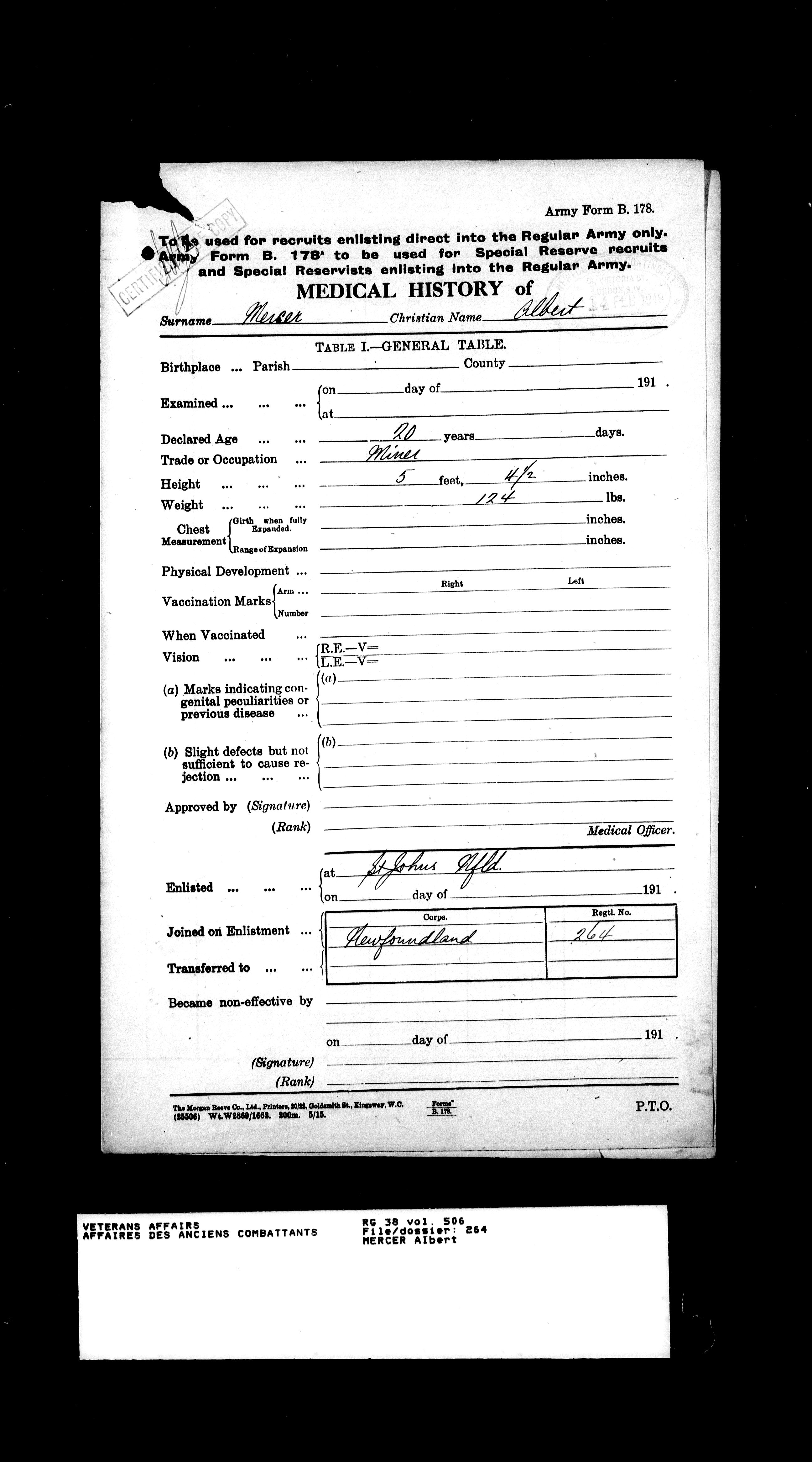 Royal Newfoundland Regiment service files : T-18038