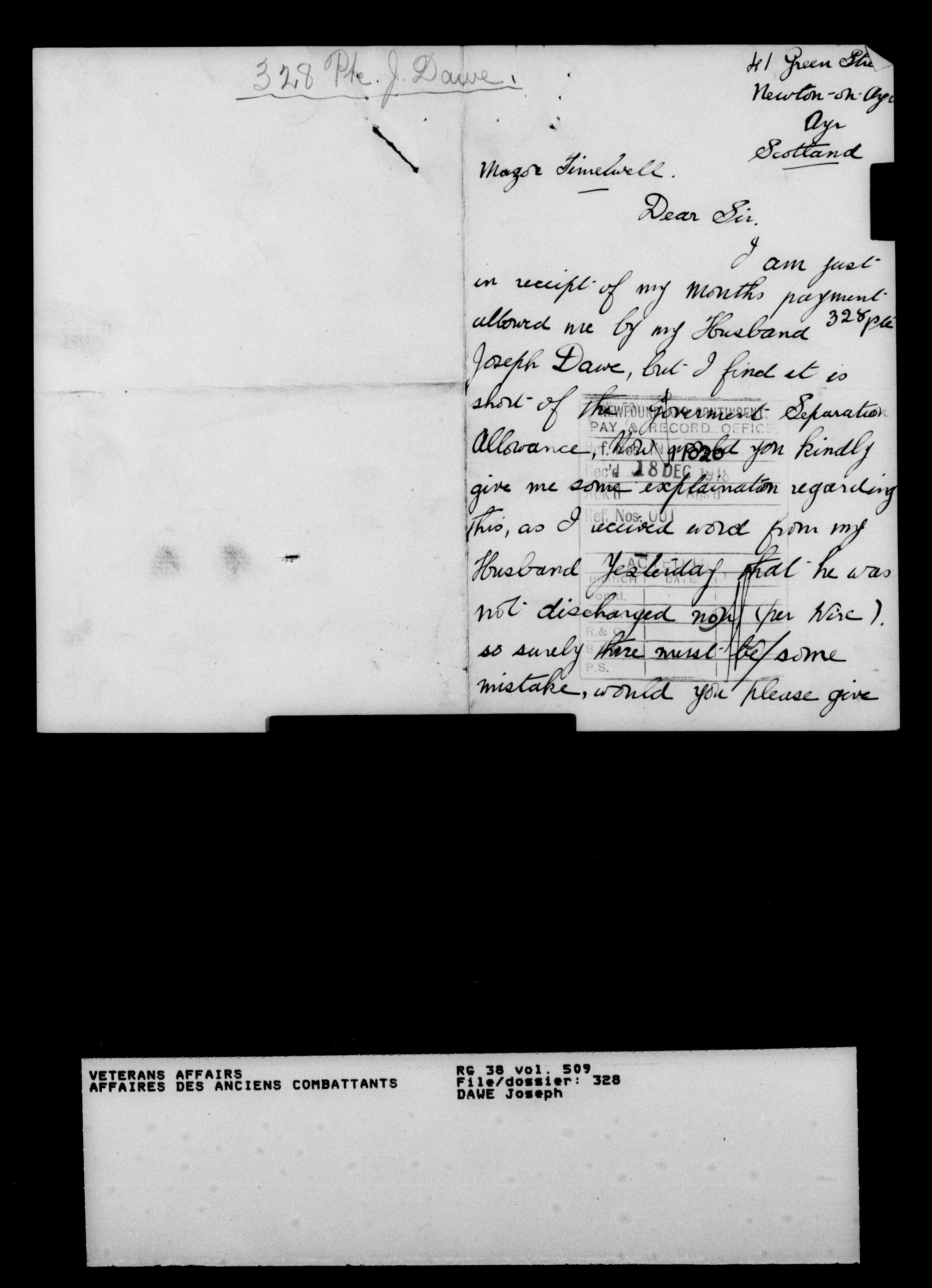 Military service files for members of the Royal Newfoundland Regiment and bandsmen and the Newfoundland Forestry Corps (1914-1919) - 18040
