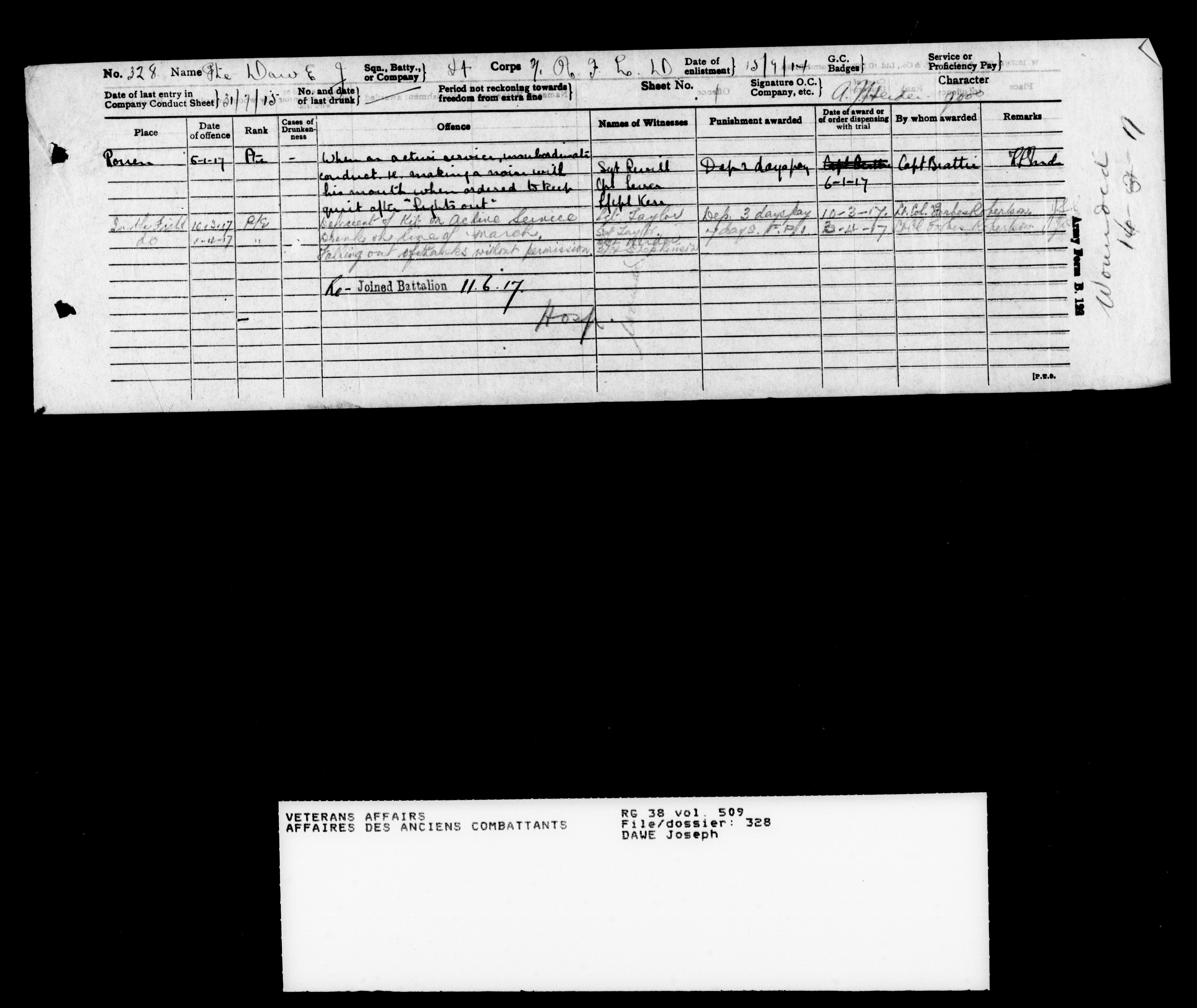 Military service files for members of the Royal Newfoundland Regiment and bandsmen and the Newfoundland Forestry Corps (1914-1919) - 18040