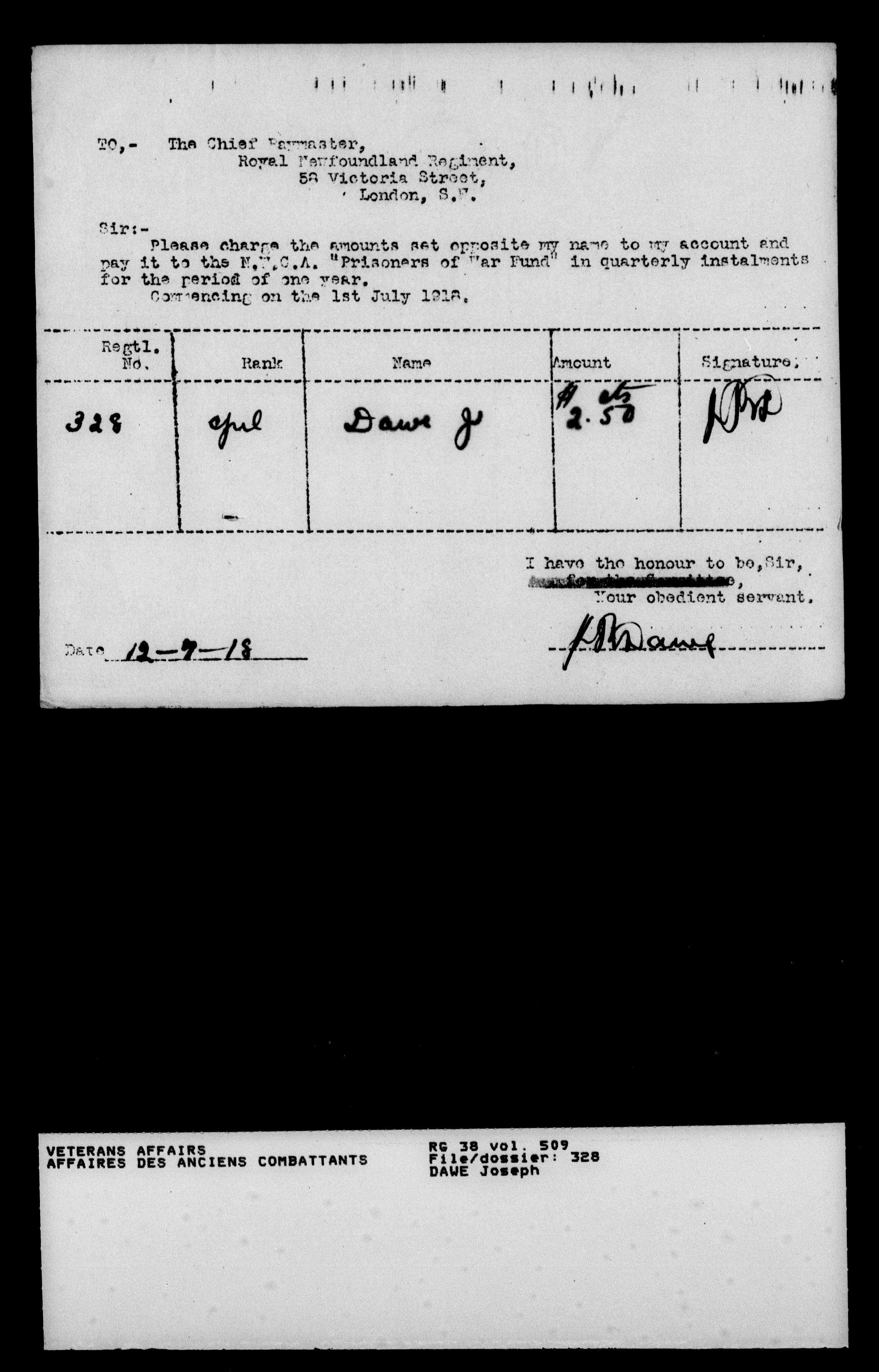 Military service files for members of the Royal Newfoundland Regiment and bandsmen and the Newfoundland Forestry Corps (1914-1919) - 18040
