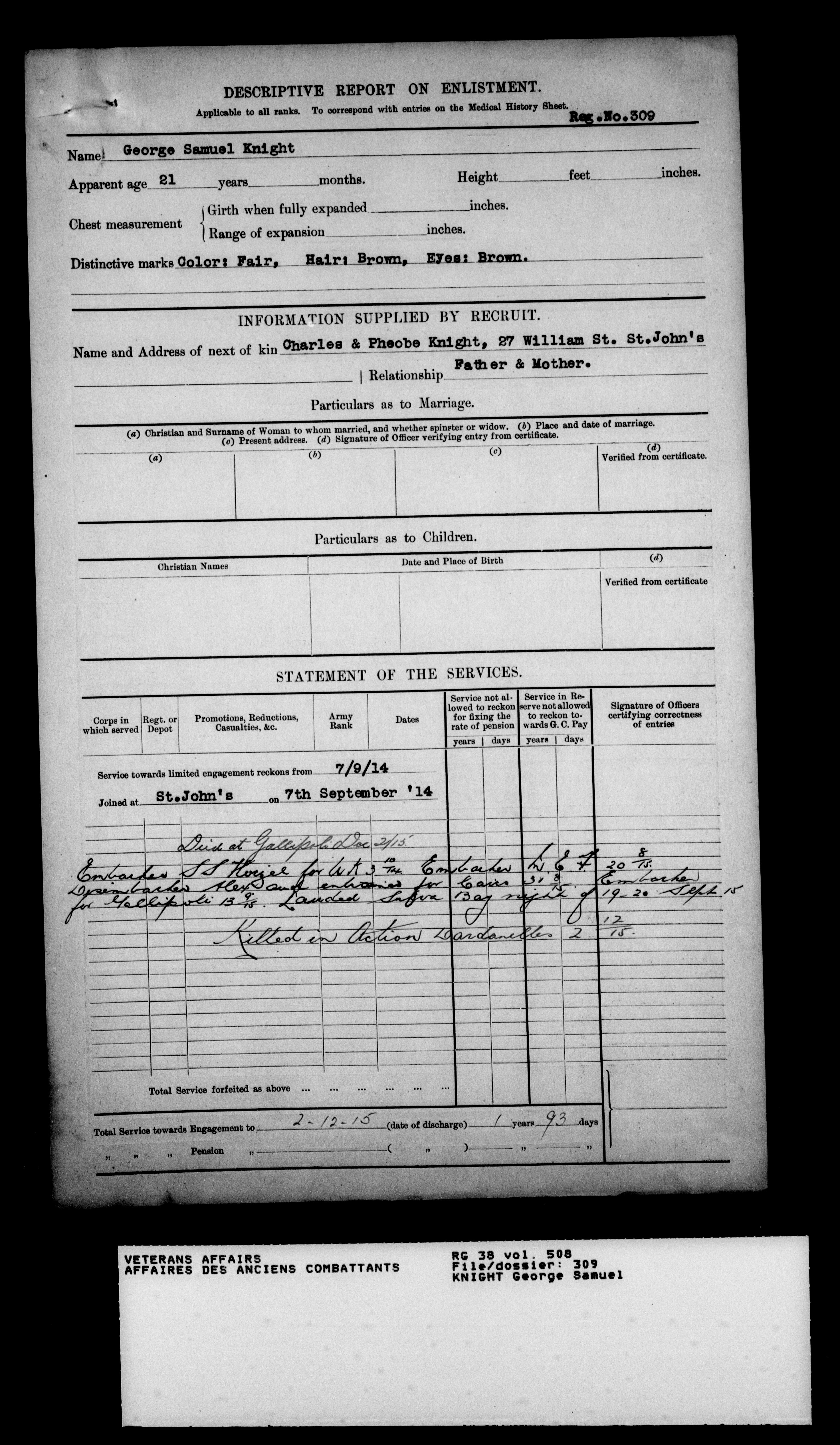 Military service files for members of the Royal Newfoundland Regiment and bandsmen and the Newfoundland Forestry Corps (1914-1919) - 18040