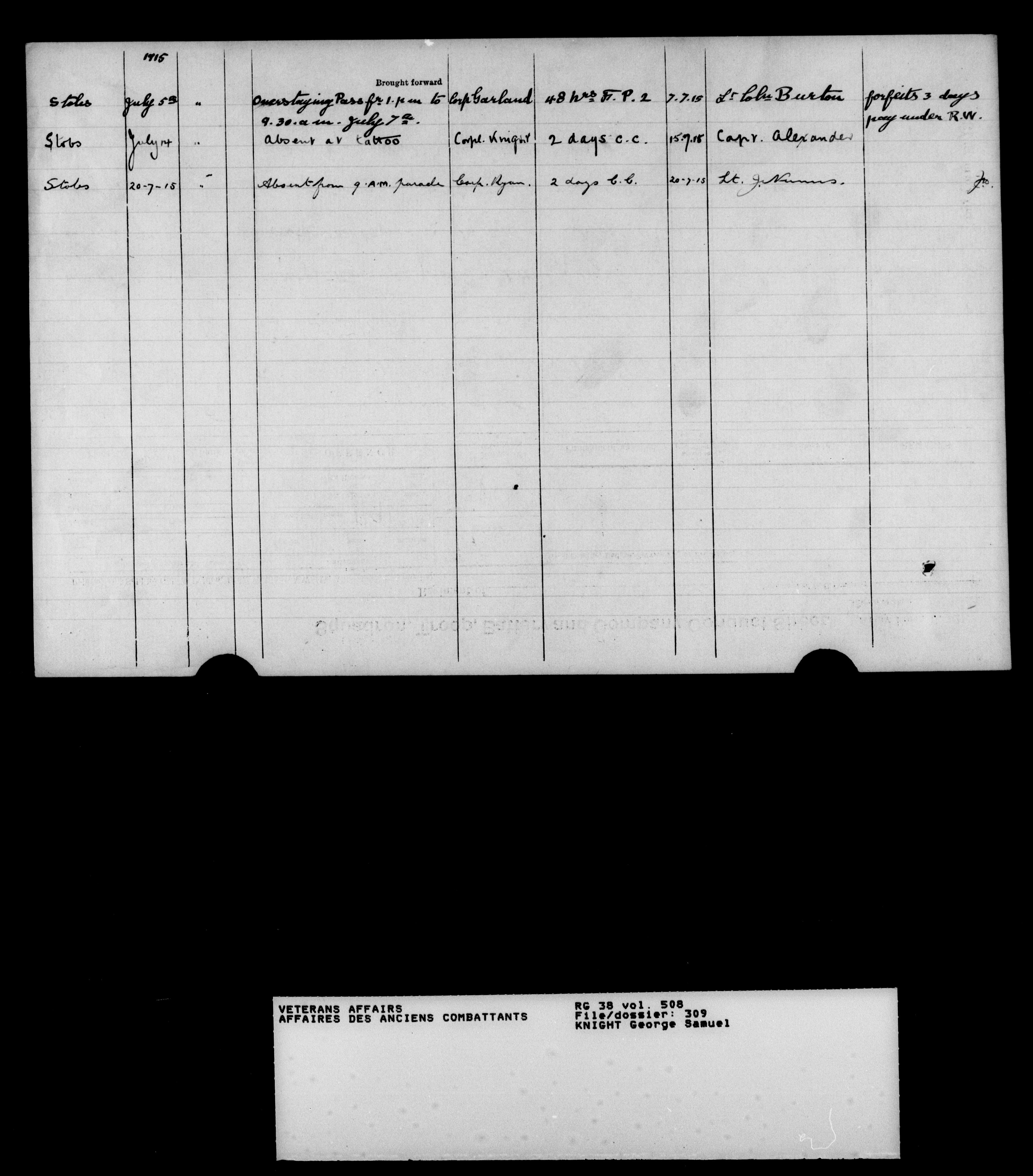 Military service files for members of the Royal Newfoundland Regiment and bandsmen and the Newfoundland Forestry Corps (1914-1919) - 18040