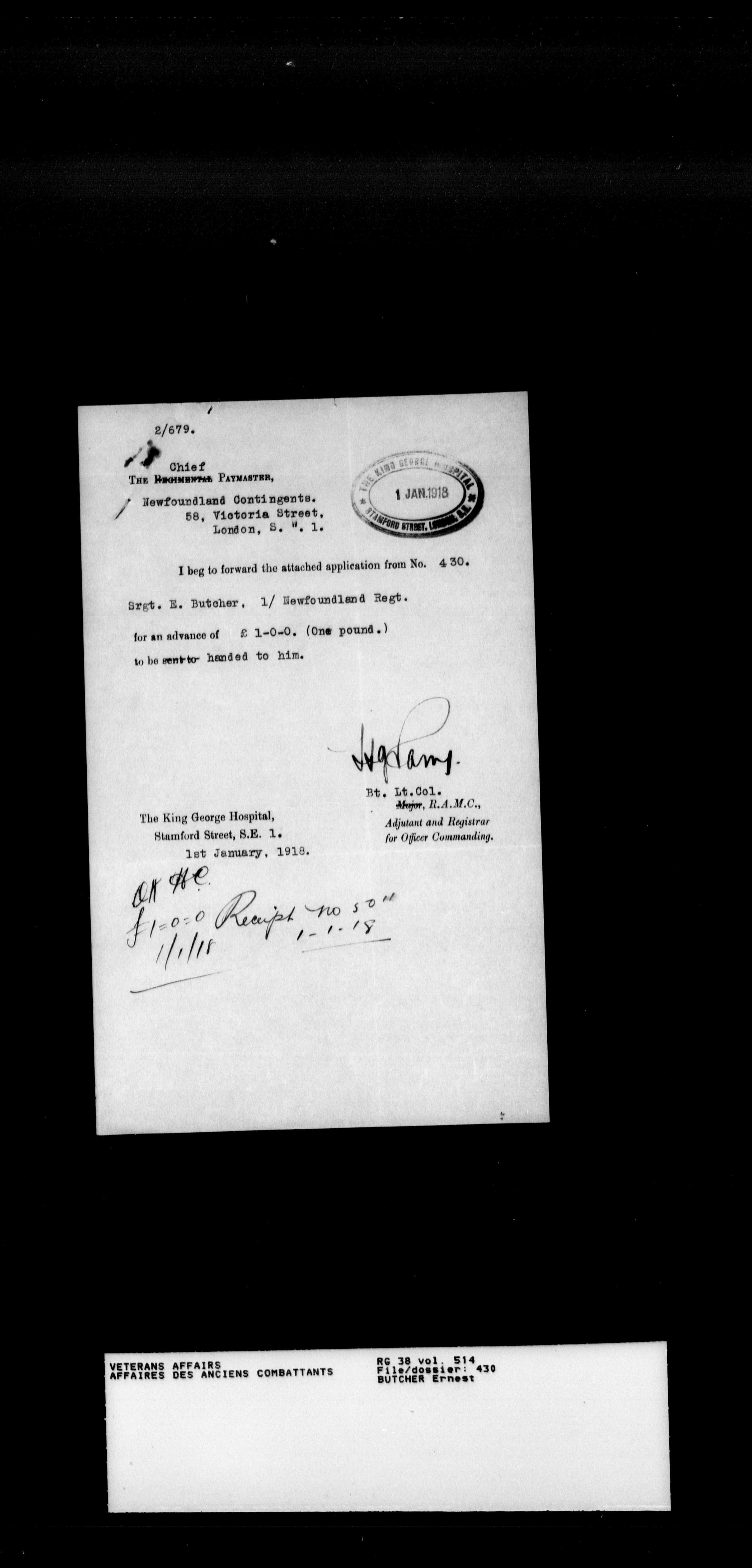 Military service files for members of the Royal Newfoundland Regiment and bandsmen and the Newfoundland Forestry Corps (1914-1919) - 18045