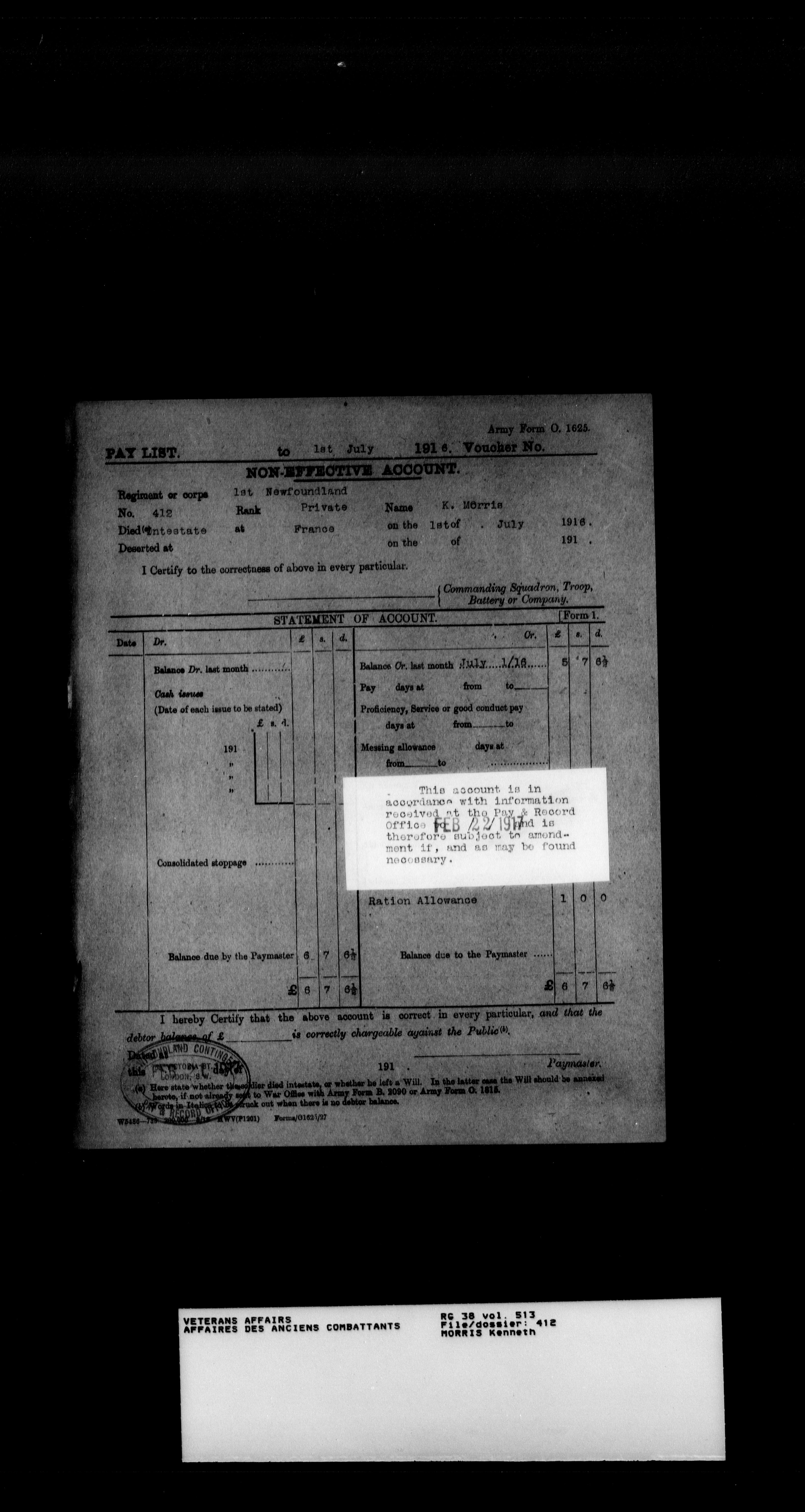 Military service files for members of the Royal Newfoundland Regiment and bandsmen and the Newfoundland Forestry Corps (1914-1919) - 18045