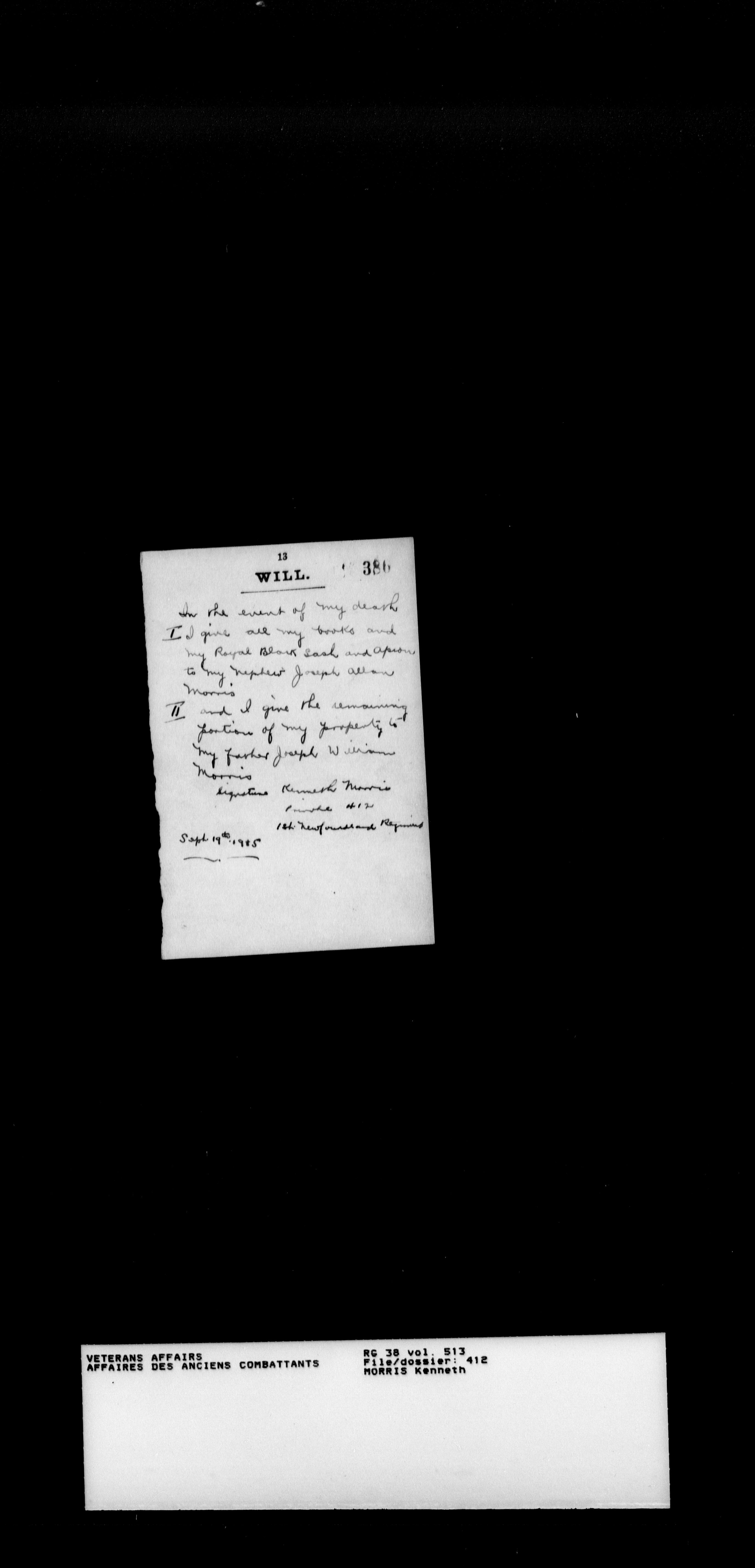 Military service files for members of the Royal Newfoundland Regiment and bandsmen and the Newfoundland Forestry Corps (1914-1919) - 18045