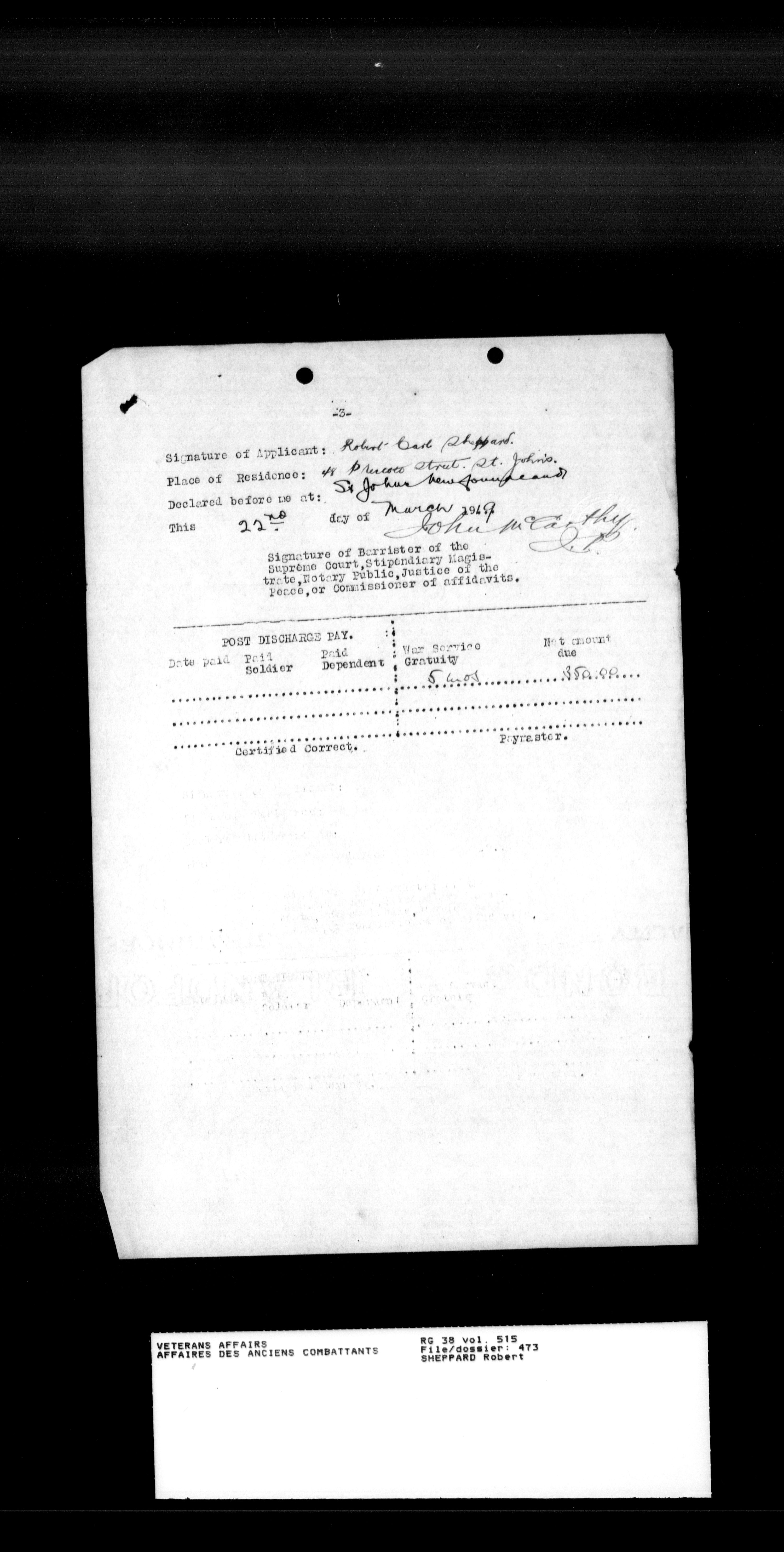 Military service files for members of the Royal Newfoundland Regiment and bandsmen and the Newfoundland Forestry Corps (1914-1919) - 18047
