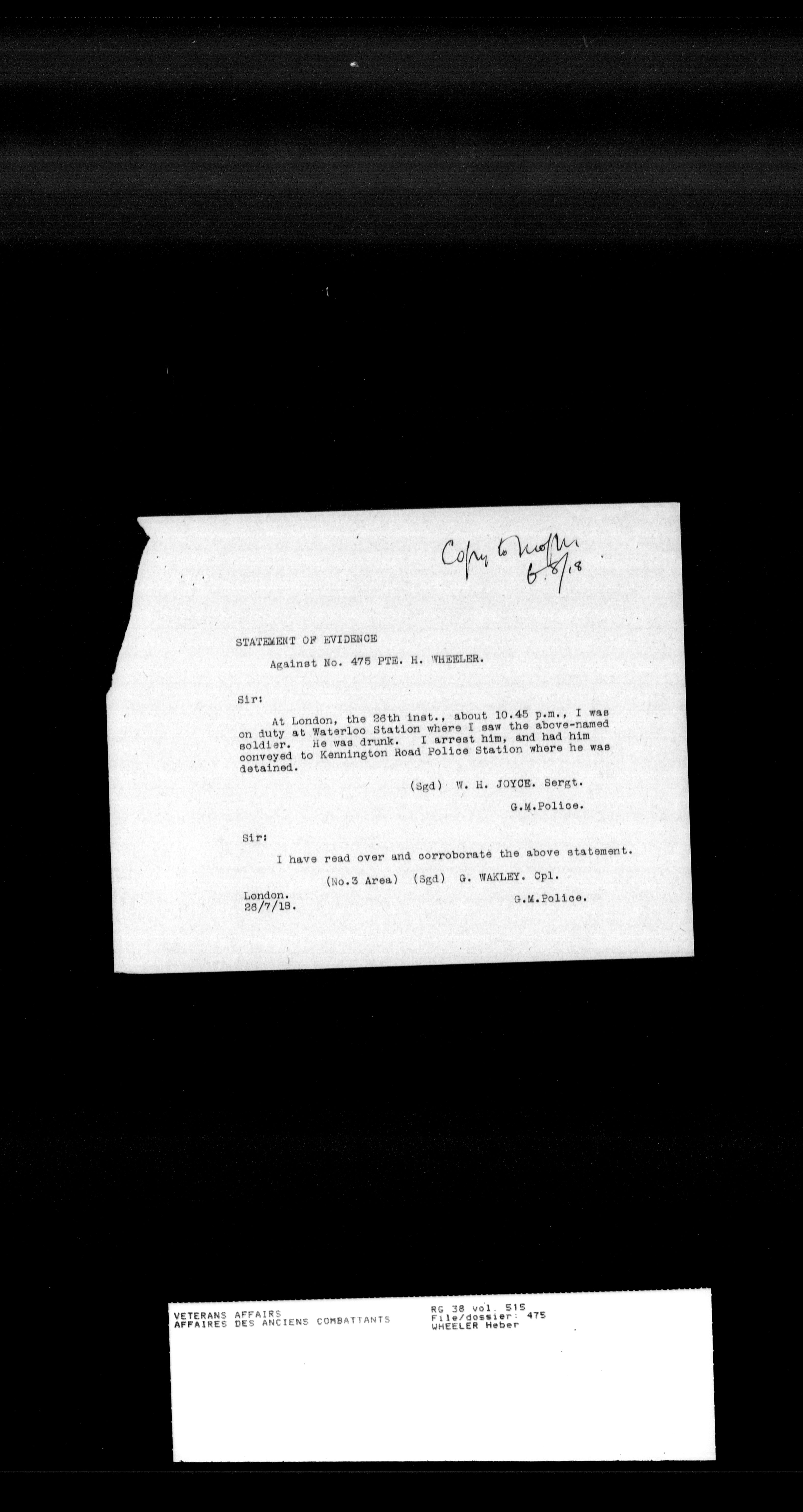 Military service files for members of the Royal Newfoundland Regiment and bandsmen and the Newfoundland Forestry Corps (1914-1919) - 18048
