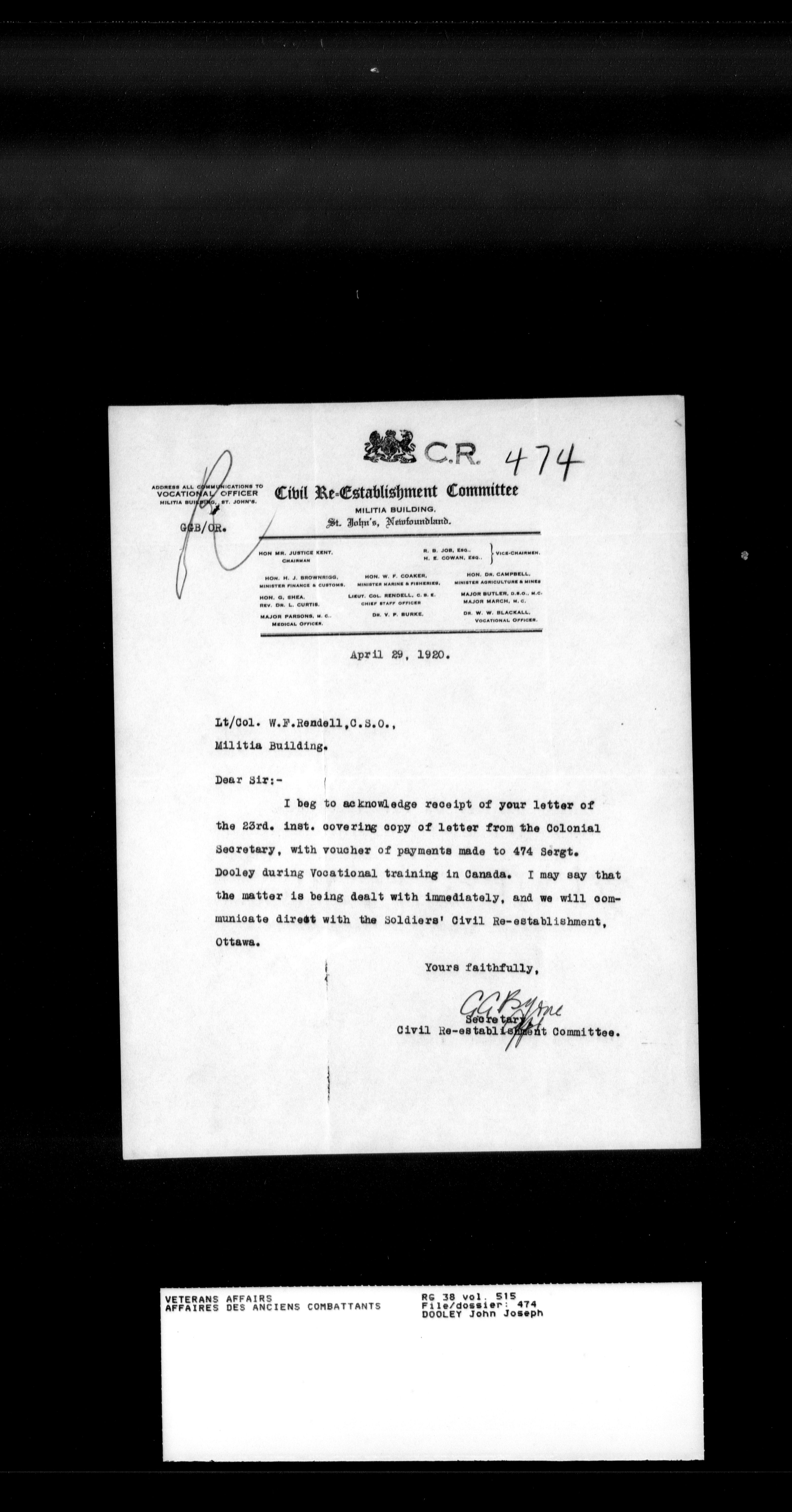 Royal Newfoundland Regiment service files : T-18048