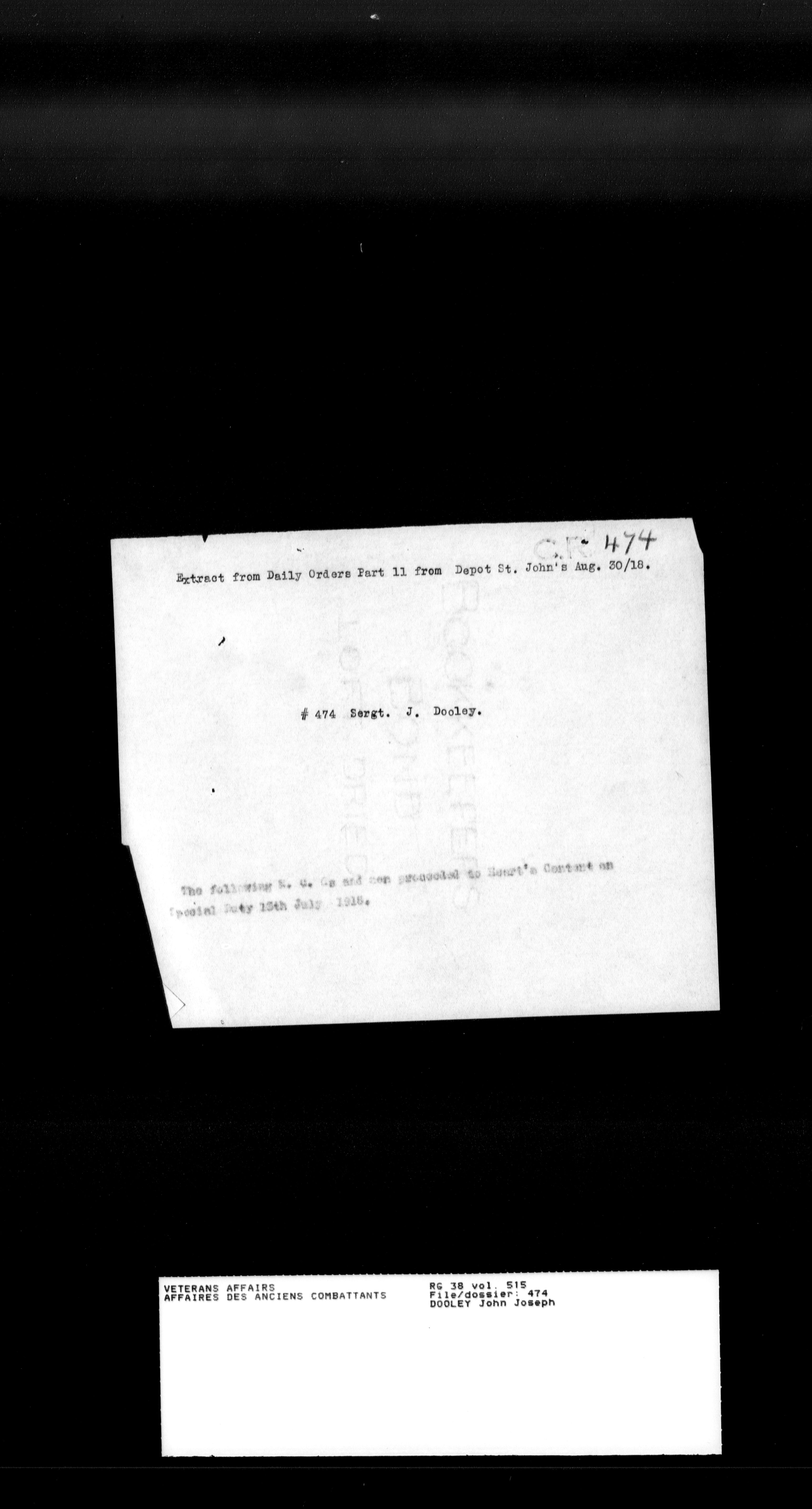 Military service files for members of the Royal Newfoundland Regiment and bandsmen and the Newfoundland Forestry Corps (1914-1919) - 18048