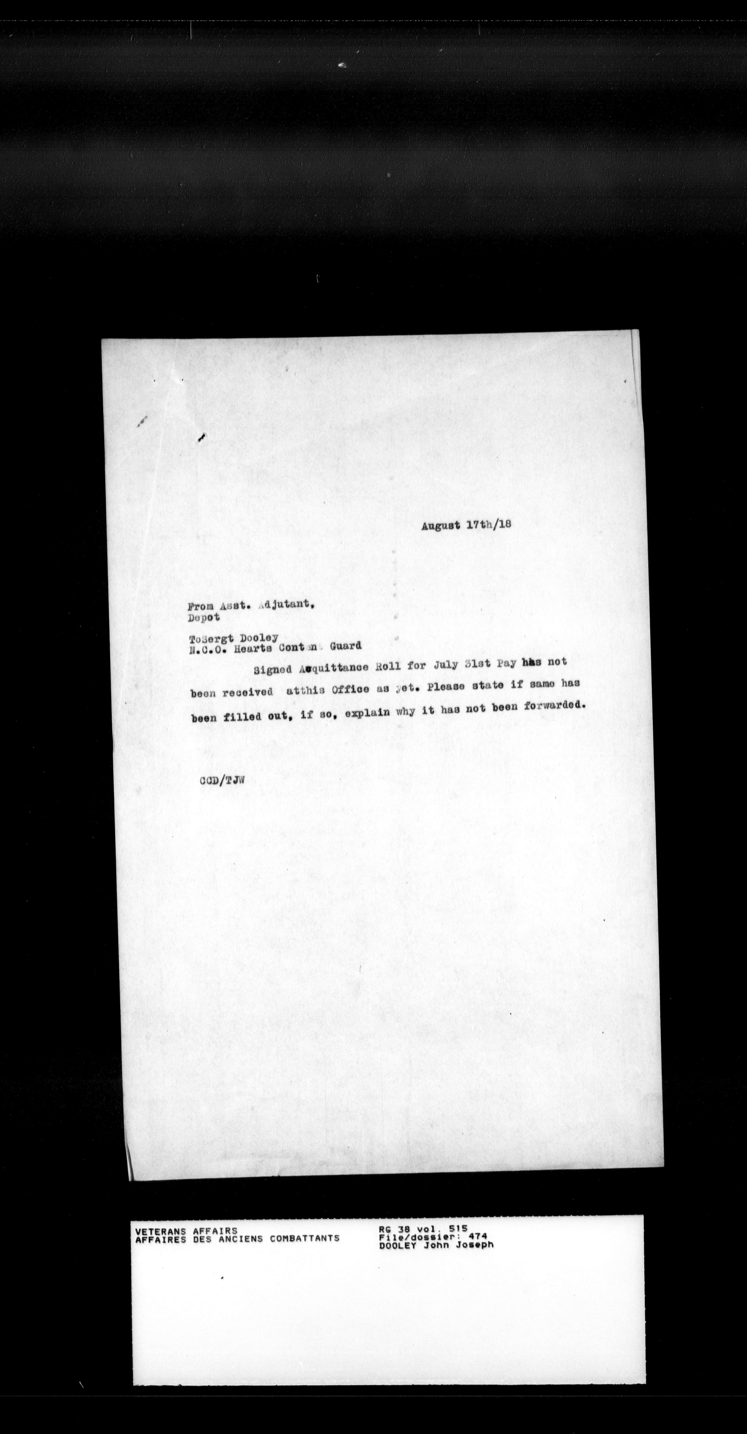Military service files for members of the Royal Newfoundland Regiment and bandsmen and the Newfoundland Forestry Corps (1914-1919) - 18048