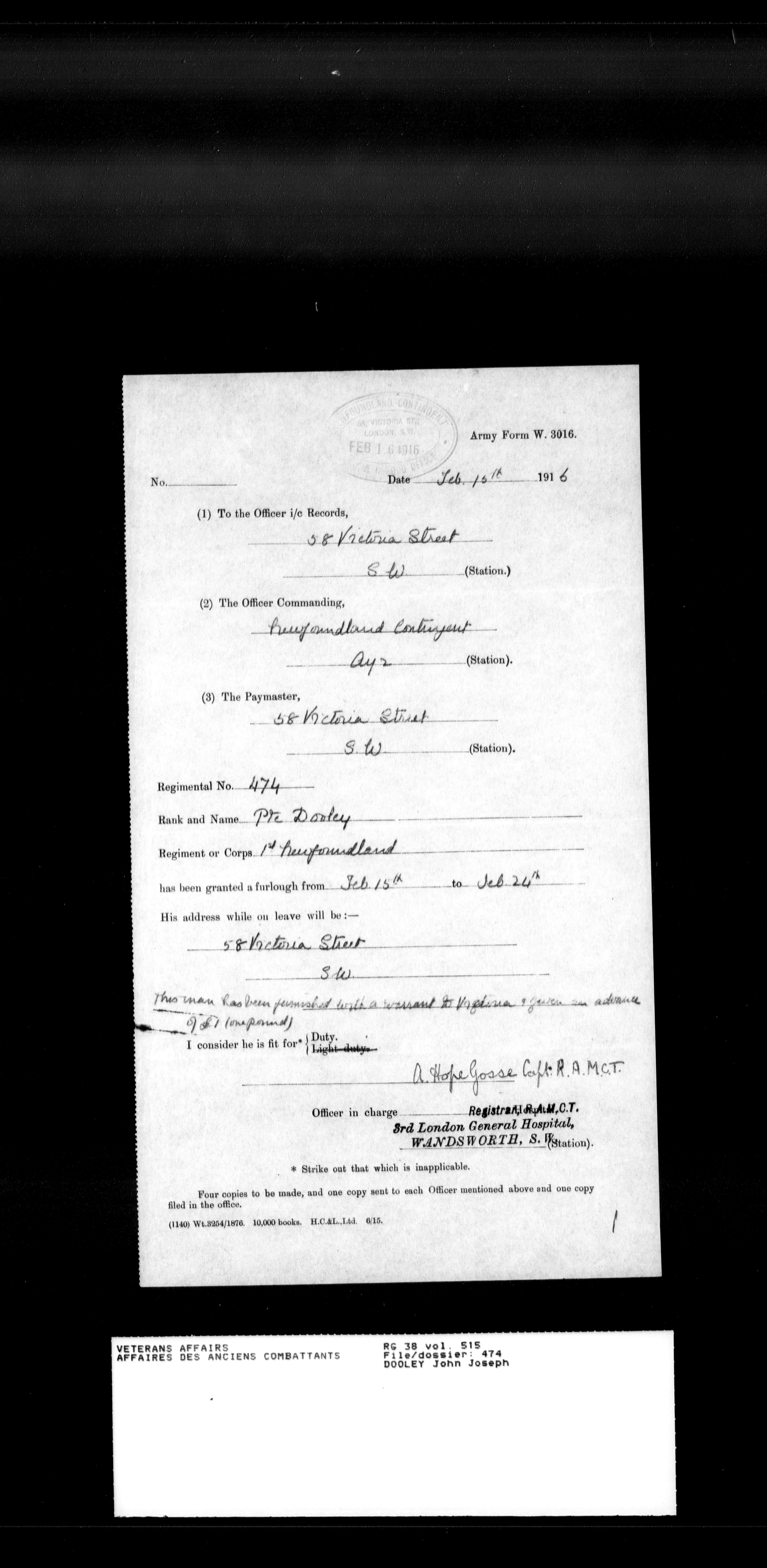 Royal Newfoundland Regiment service files : T-18048
