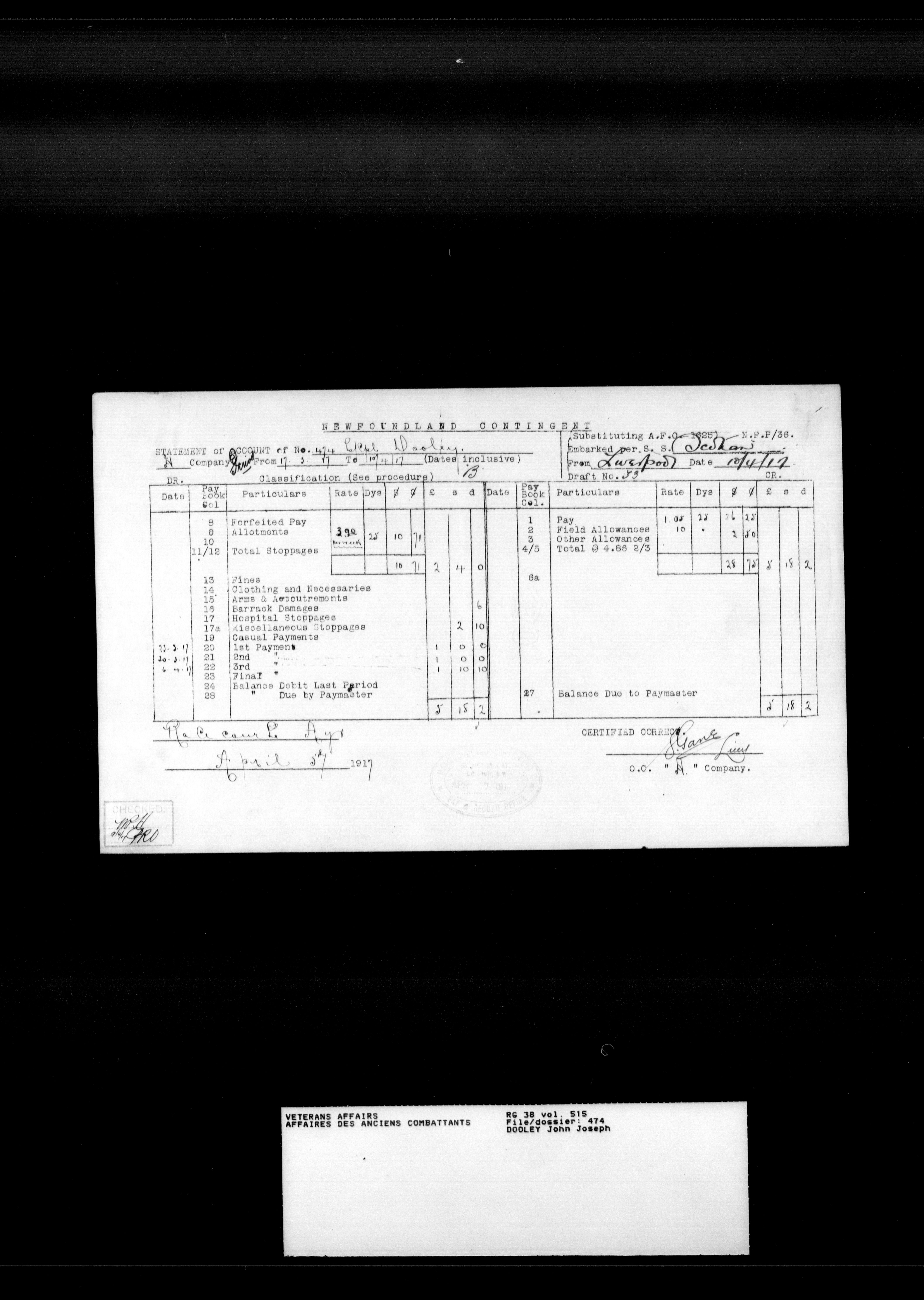 Royal Newfoundland Regiment service files : T-18048