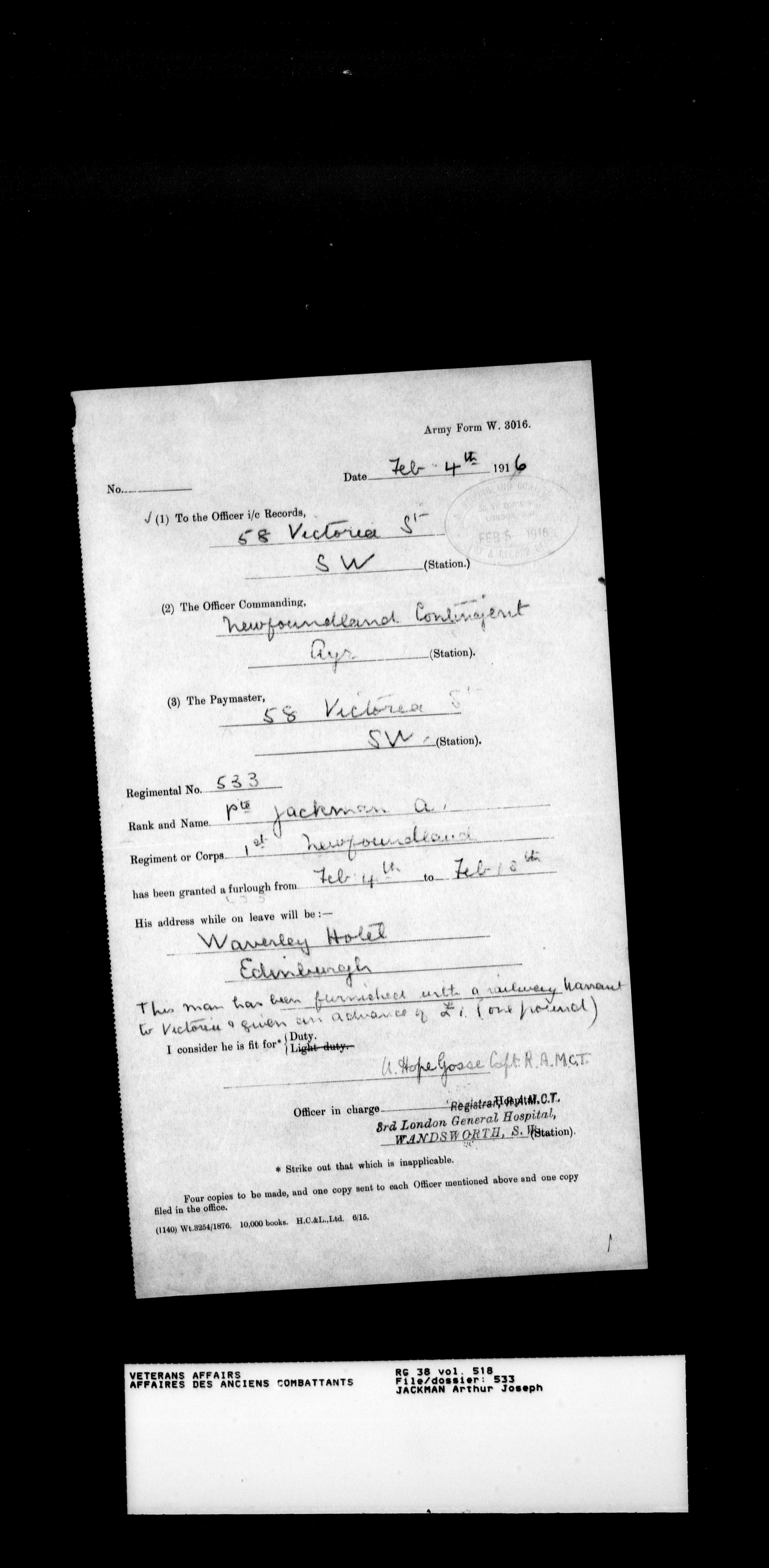 Royal Newfoundland Regiment service files : T-18050