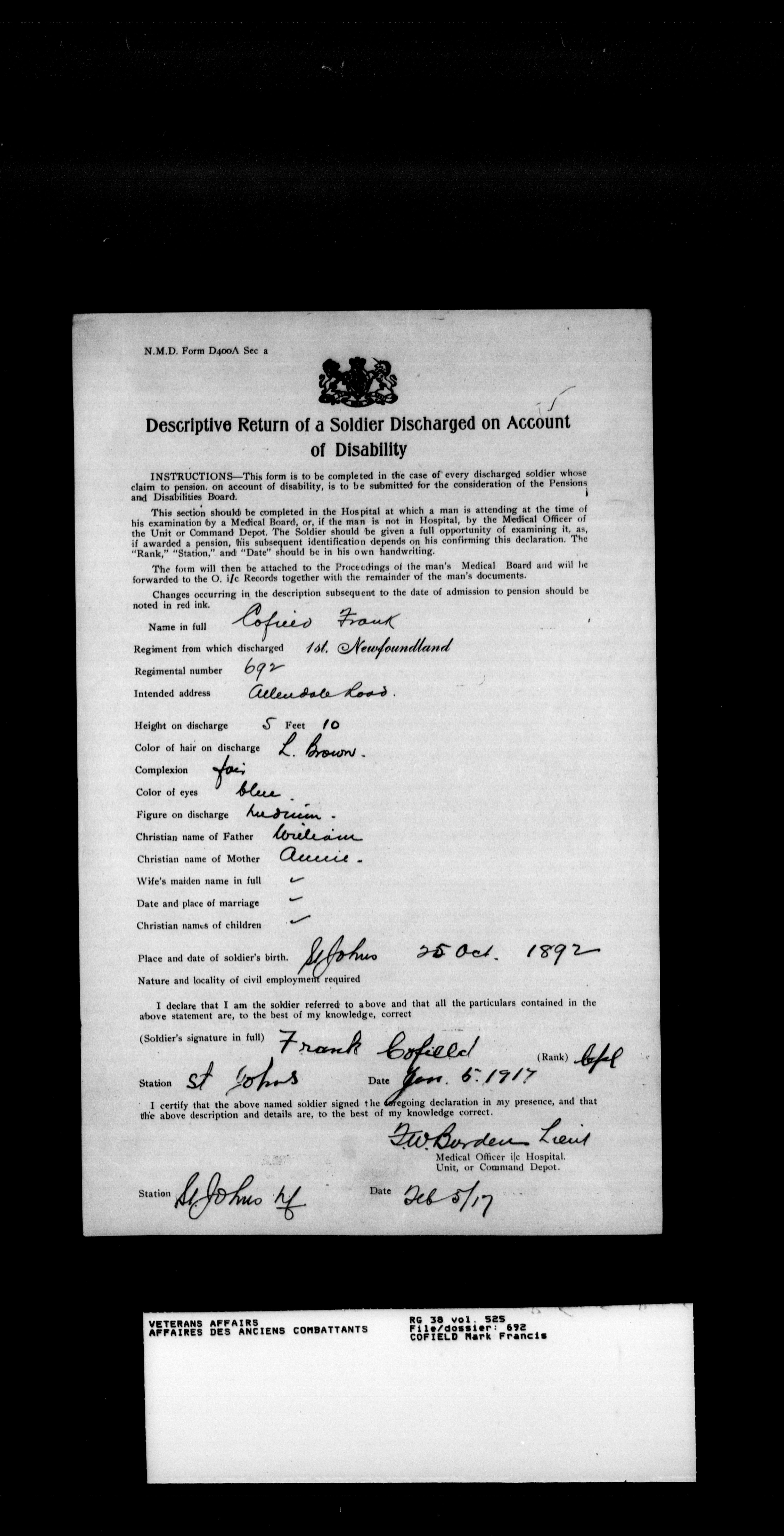 Military service files for members of the Royal Newfoundland Regiment and bandsmen and the Newfoundland Forestry Corps (1914-1919) - 18057