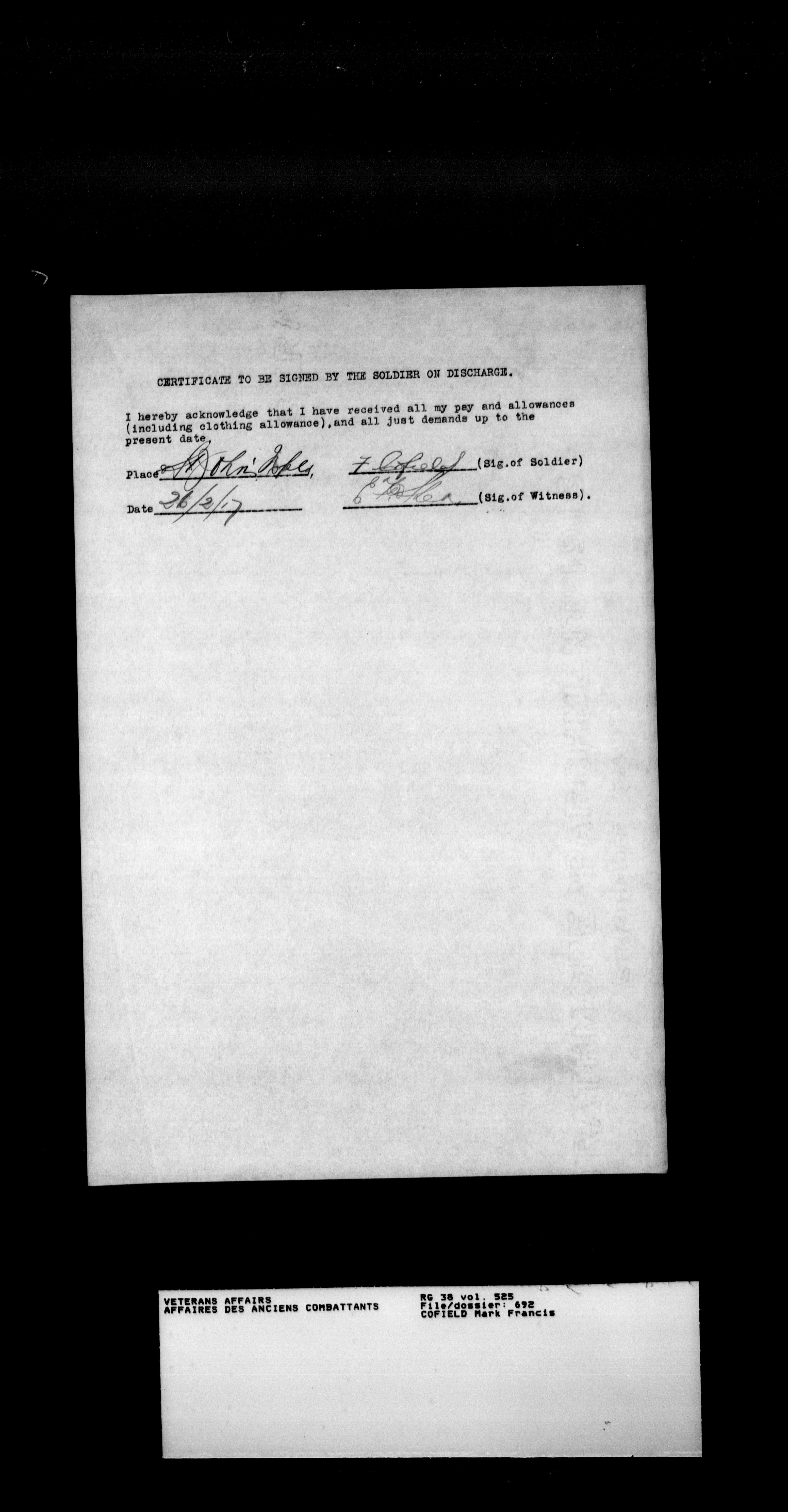 Military service files for members of the Royal Newfoundland Regiment and bandsmen and the Newfoundland Forestry Corps (1914-1919) - 18057