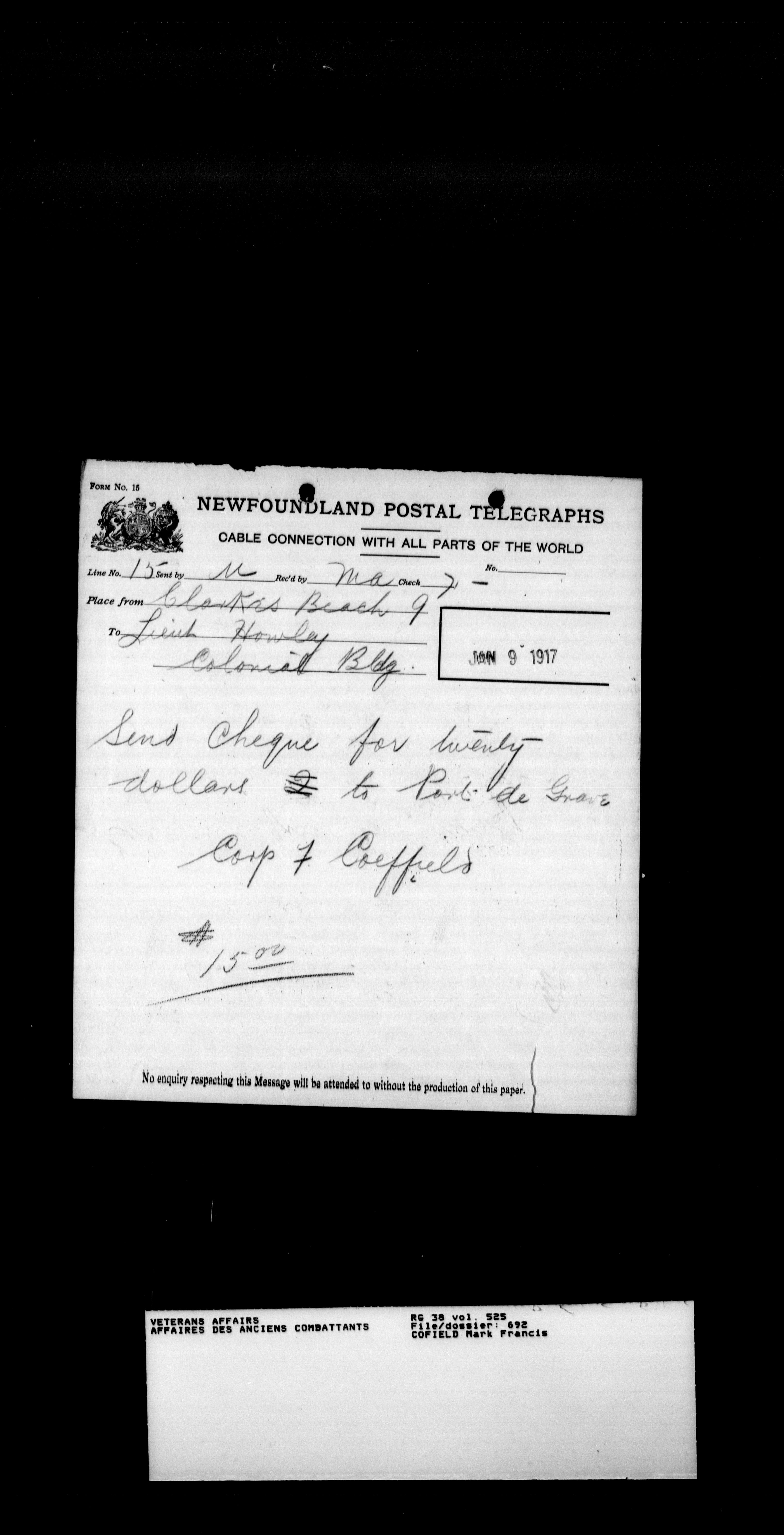Military service files for members of the Royal Newfoundland Regiment and bandsmen and the Newfoundland Forestry Corps (1914-1919) - 18057