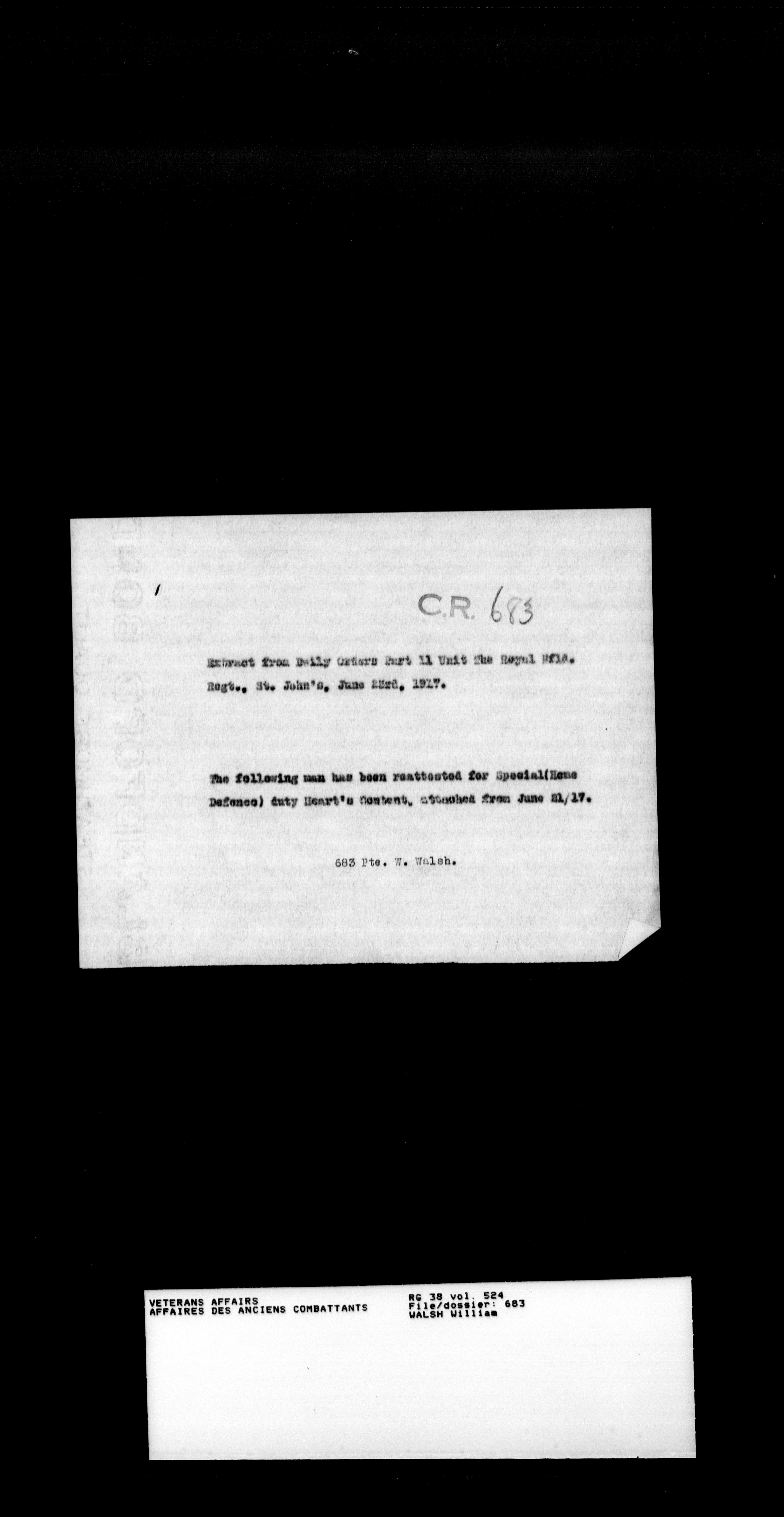 Military service files for members of the Royal Newfoundland Regiment and bandsmen and the Newfoundland Forestry Corps (1914-1919) - 18057