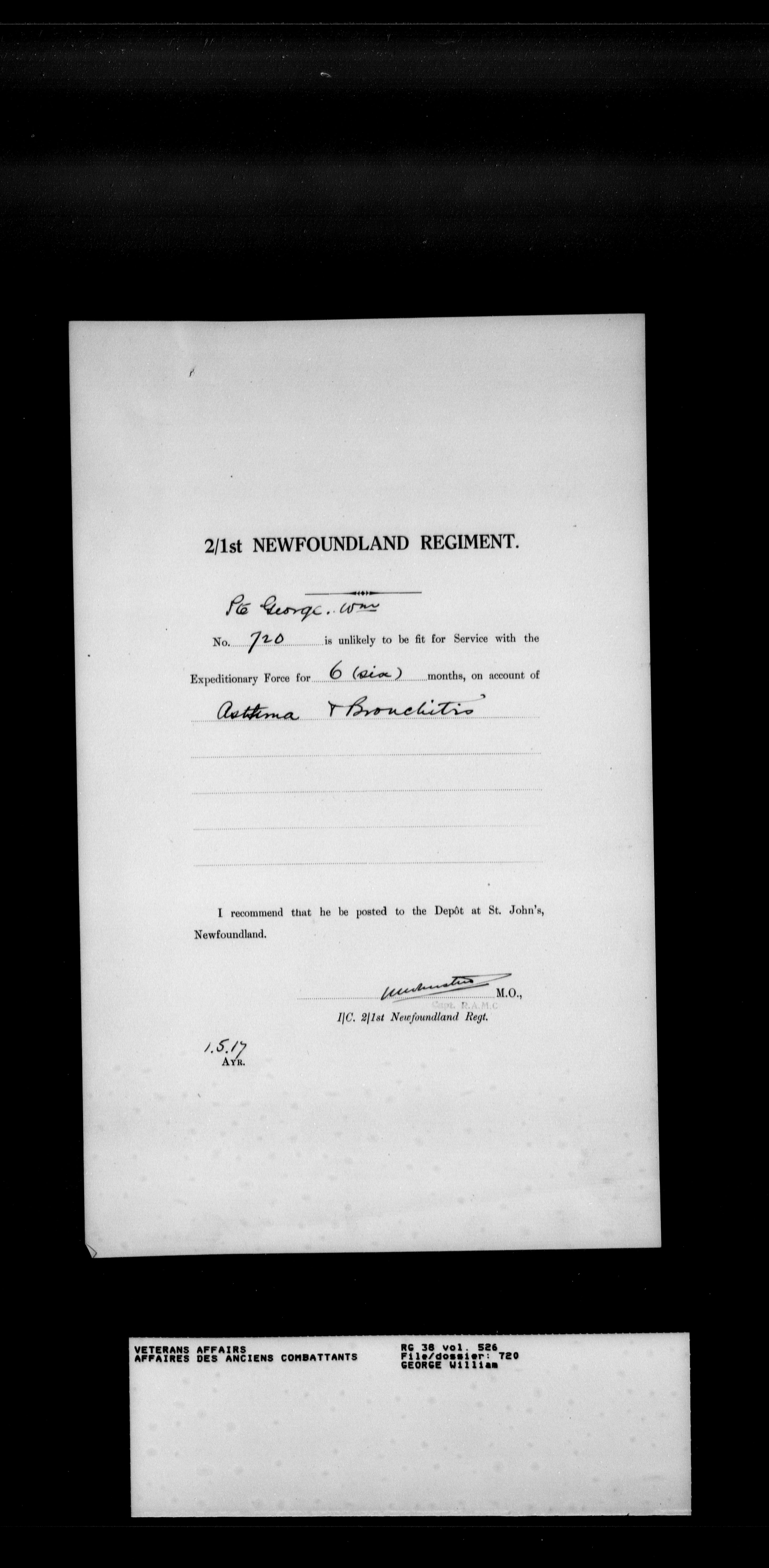 Military service files for members of the Royal Newfoundland Regiment and bandsmen and the Newfoundland Forestry Corps (1914-1919) - 18059