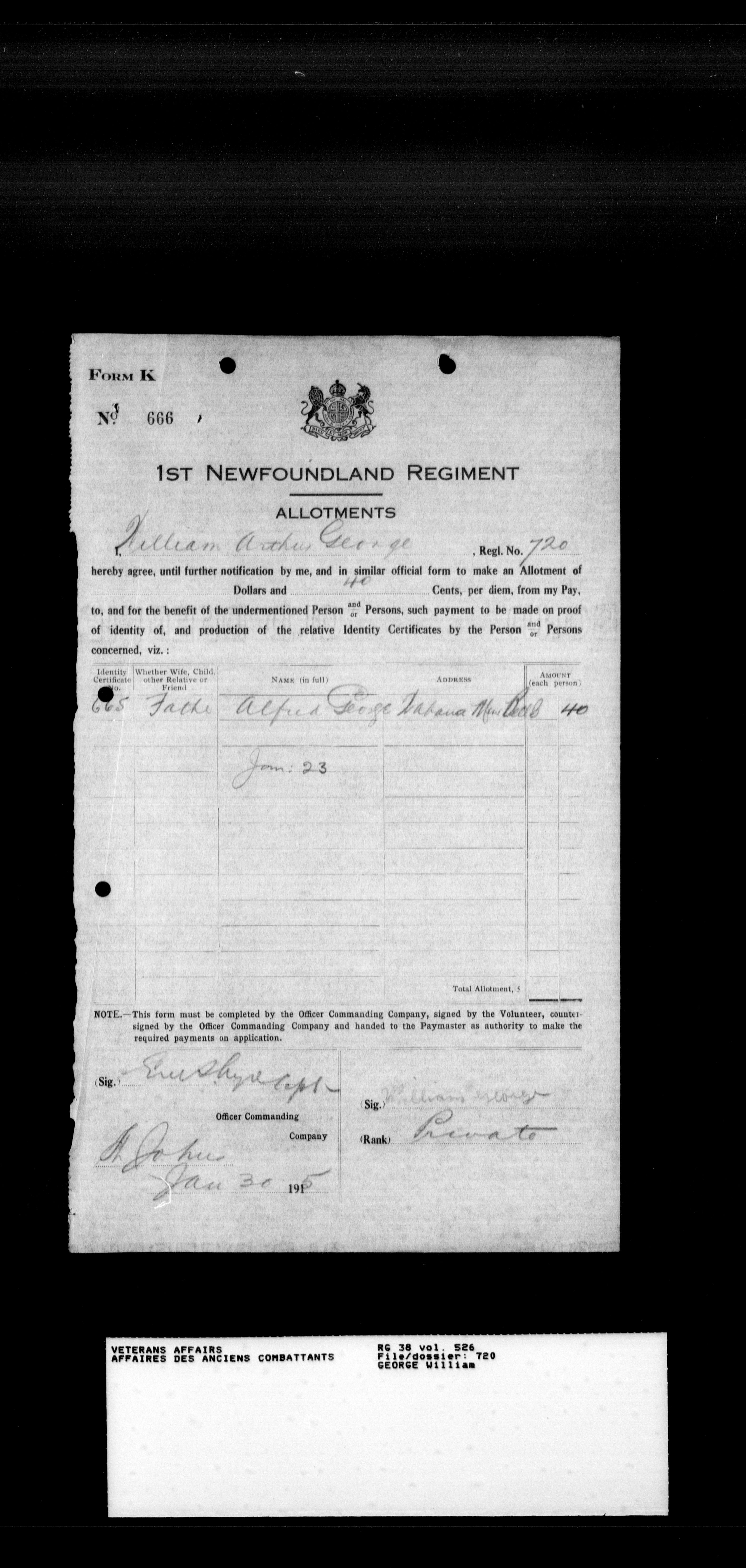 Royal Newfoundland Regiment service files : T-18059