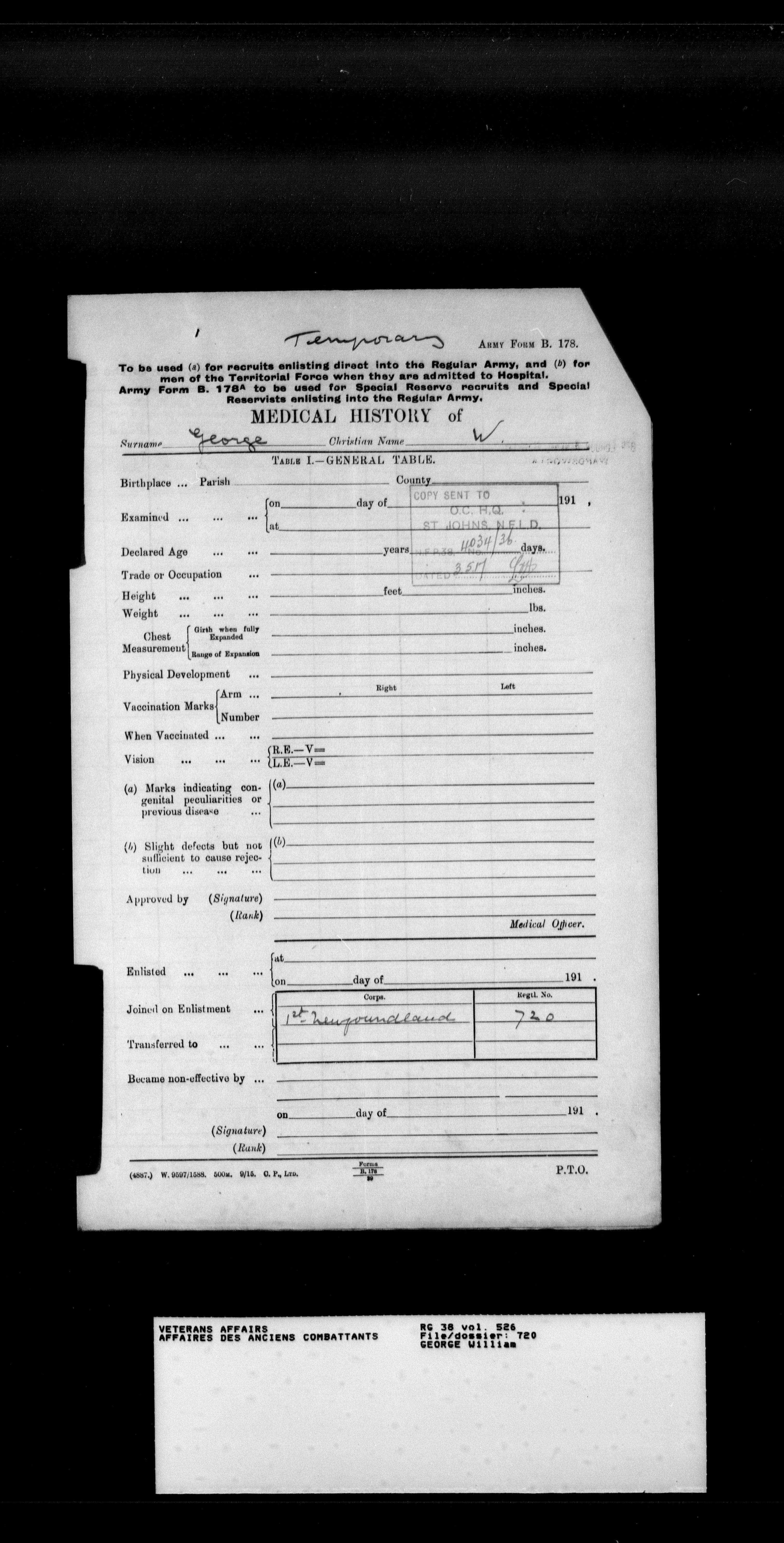 Military service files for members of the Royal Newfoundland Regiment and bandsmen and the Newfoundland Forestry Corps (1914-1919) - 18059