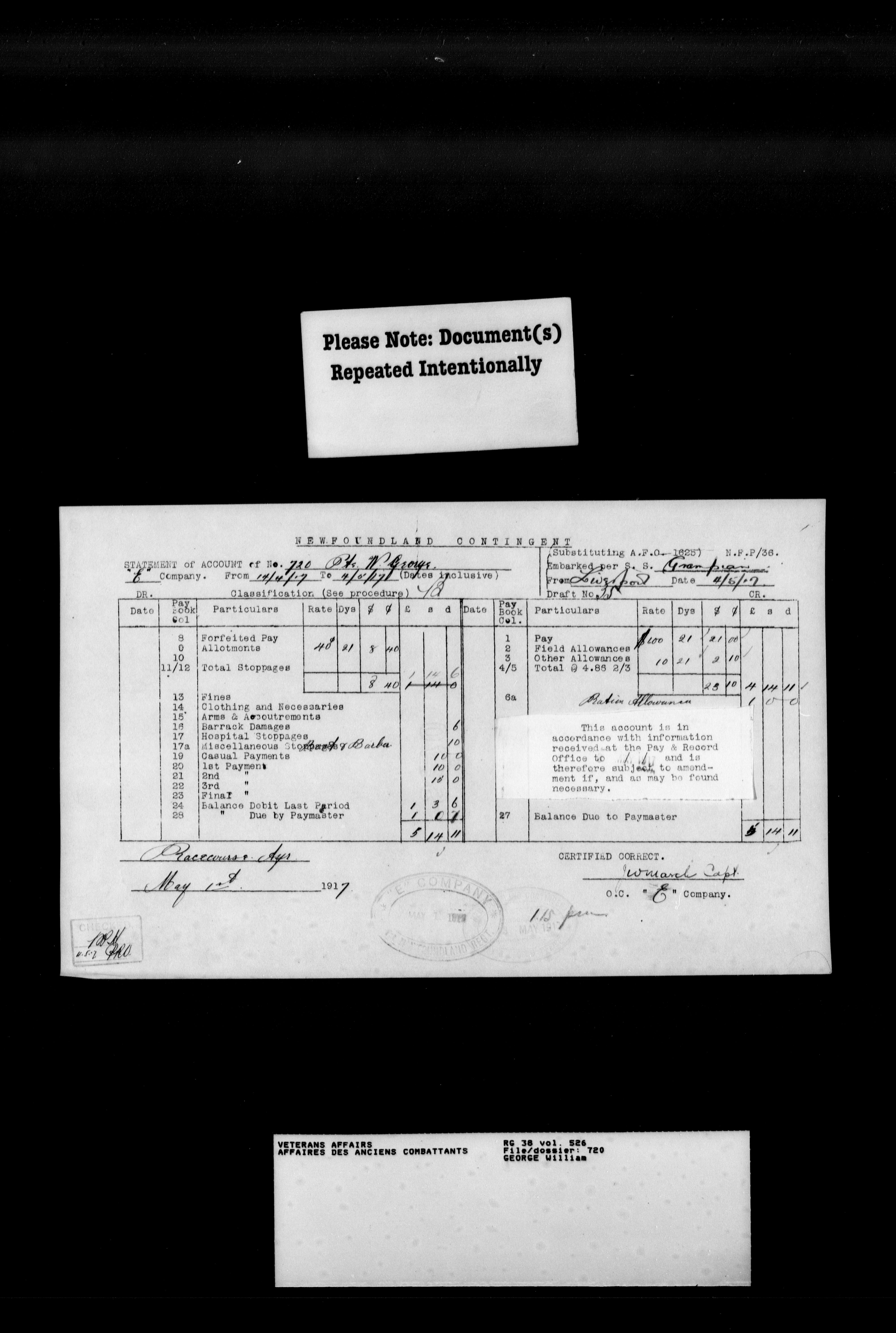 Military service files for members of the Royal Newfoundland Regiment and bandsmen and the Newfoundland Forestry Corps (1914-1919) - 18059