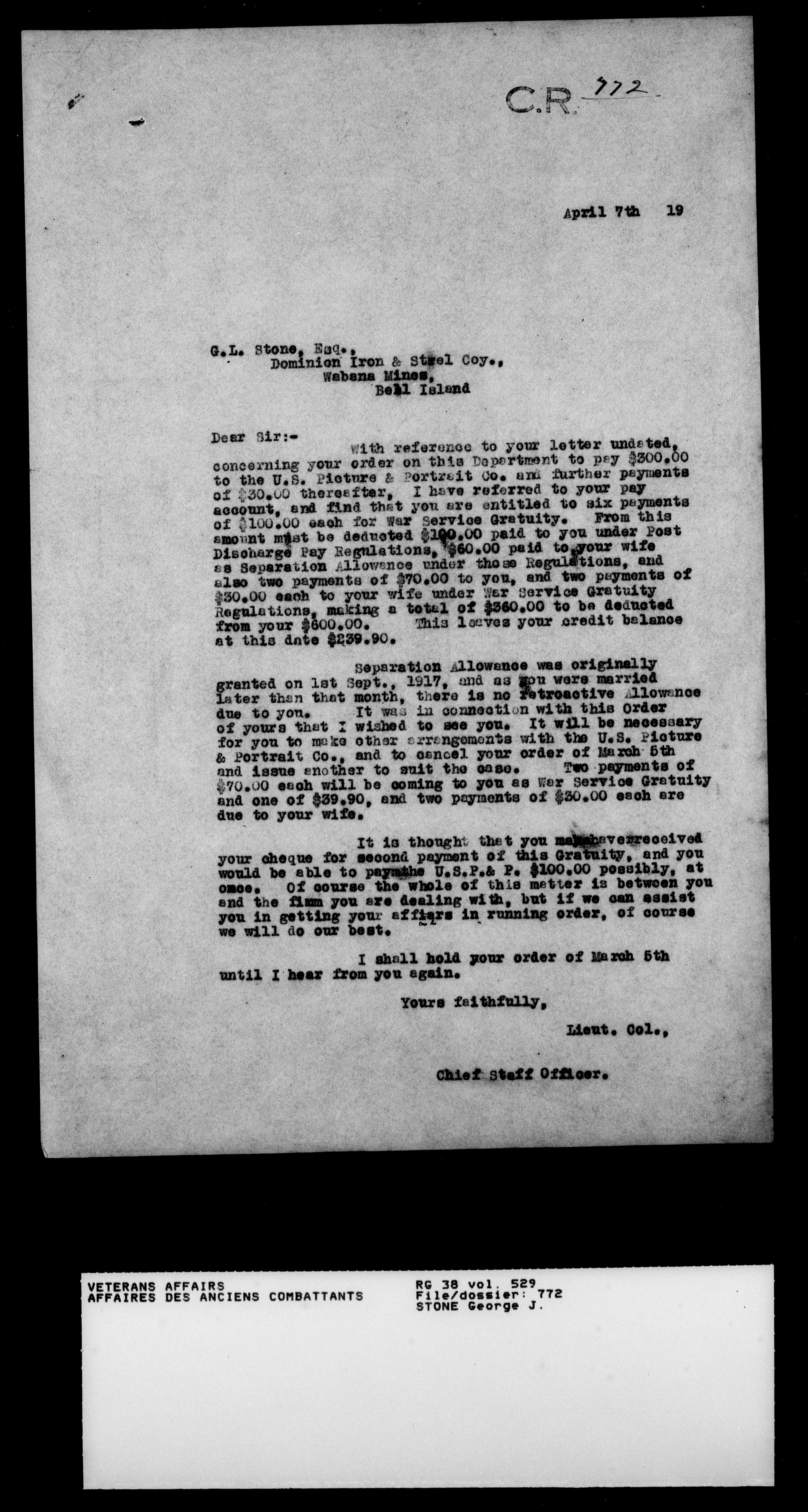 Military service files for members of the Royal Newfoundland Regiment and bandsmen and the Newfoundland Forestry Corps (1914-1919) - 18063