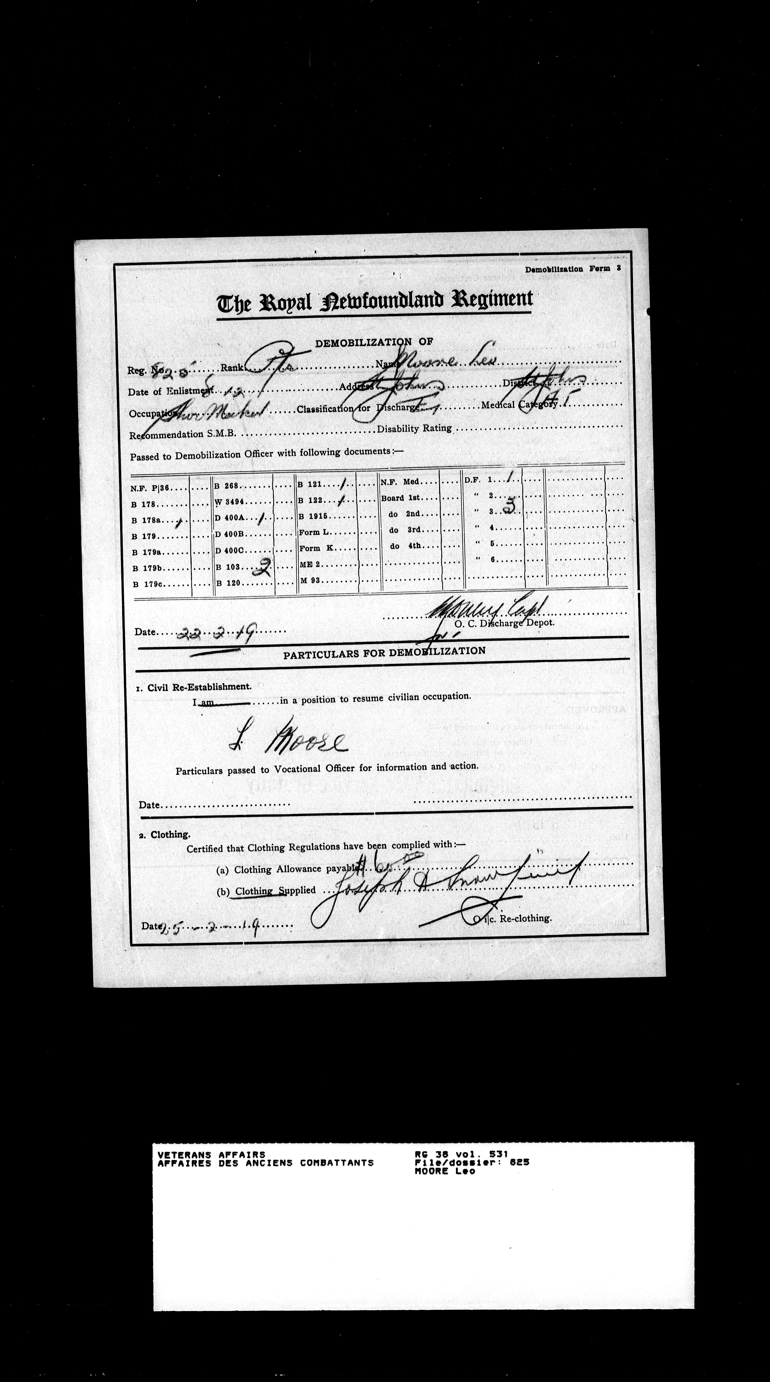 Military service files for members of the Royal Newfoundland Regiment and bandsmen and the Newfoundland Forestry Corps (1914-1919) - 18065