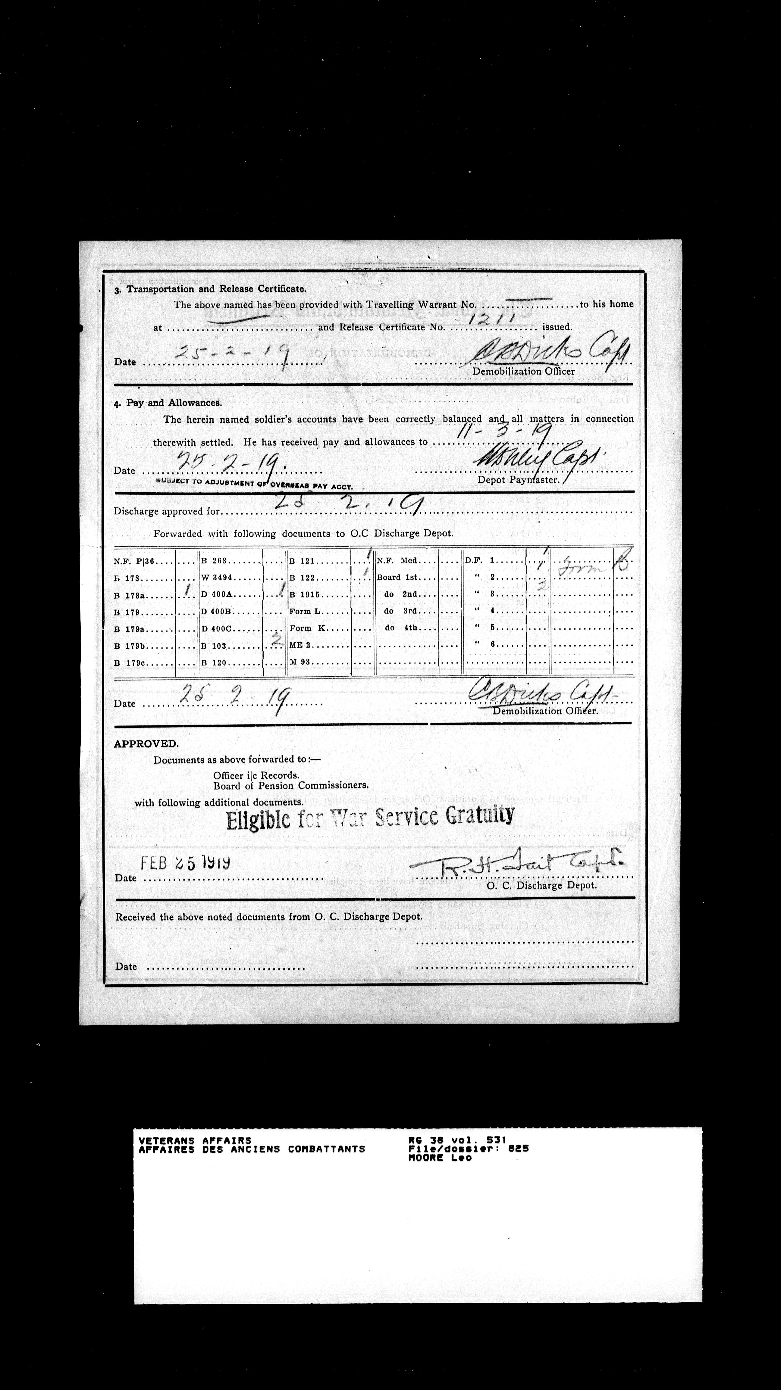 Military service files for members of the Royal Newfoundland Regiment and bandsmen and the Newfoundland Forestry Corps (1914-1919) - 18065