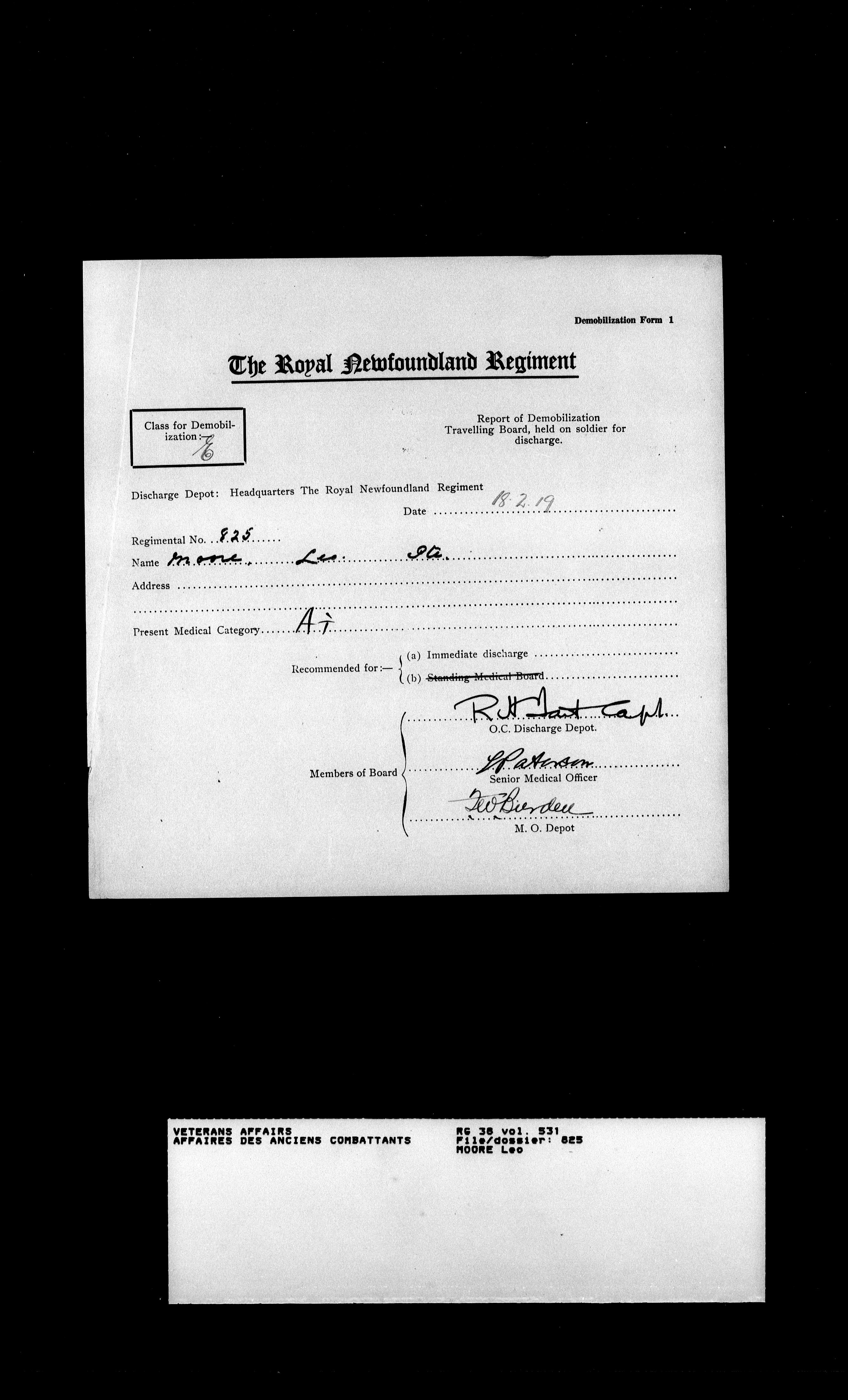 Military service files for members of the Royal Newfoundland Regiment and bandsmen and the Newfoundland Forestry Corps (1914-1919) - 18065