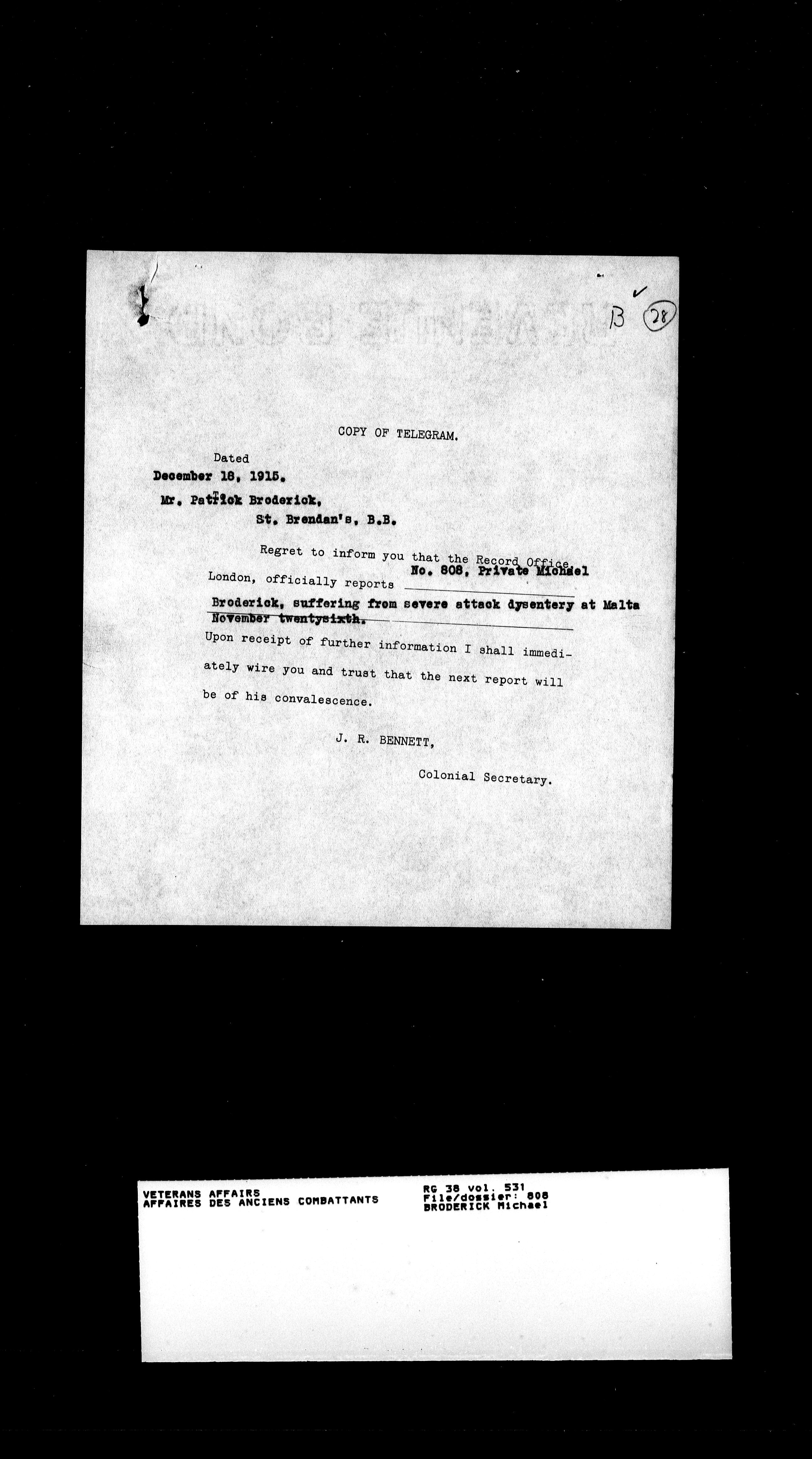 Military service files for members of the Royal Newfoundland Regiment and bandsmen and the Newfoundland Forestry Corps (1914-1919) - 18065