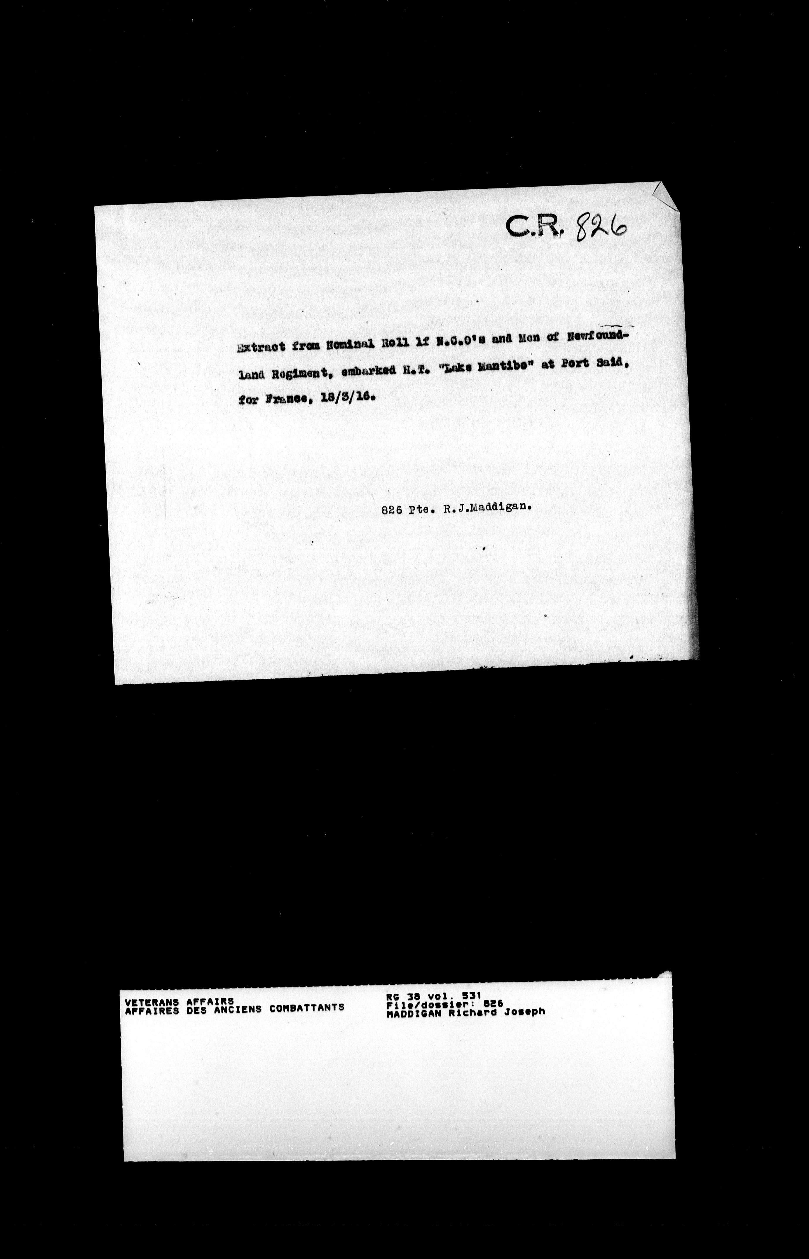 Military service files for members of the Royal Newfoundland Regiment and bandsmen and the Newfoundland Forestry Corps (1914-1919) - 18066
