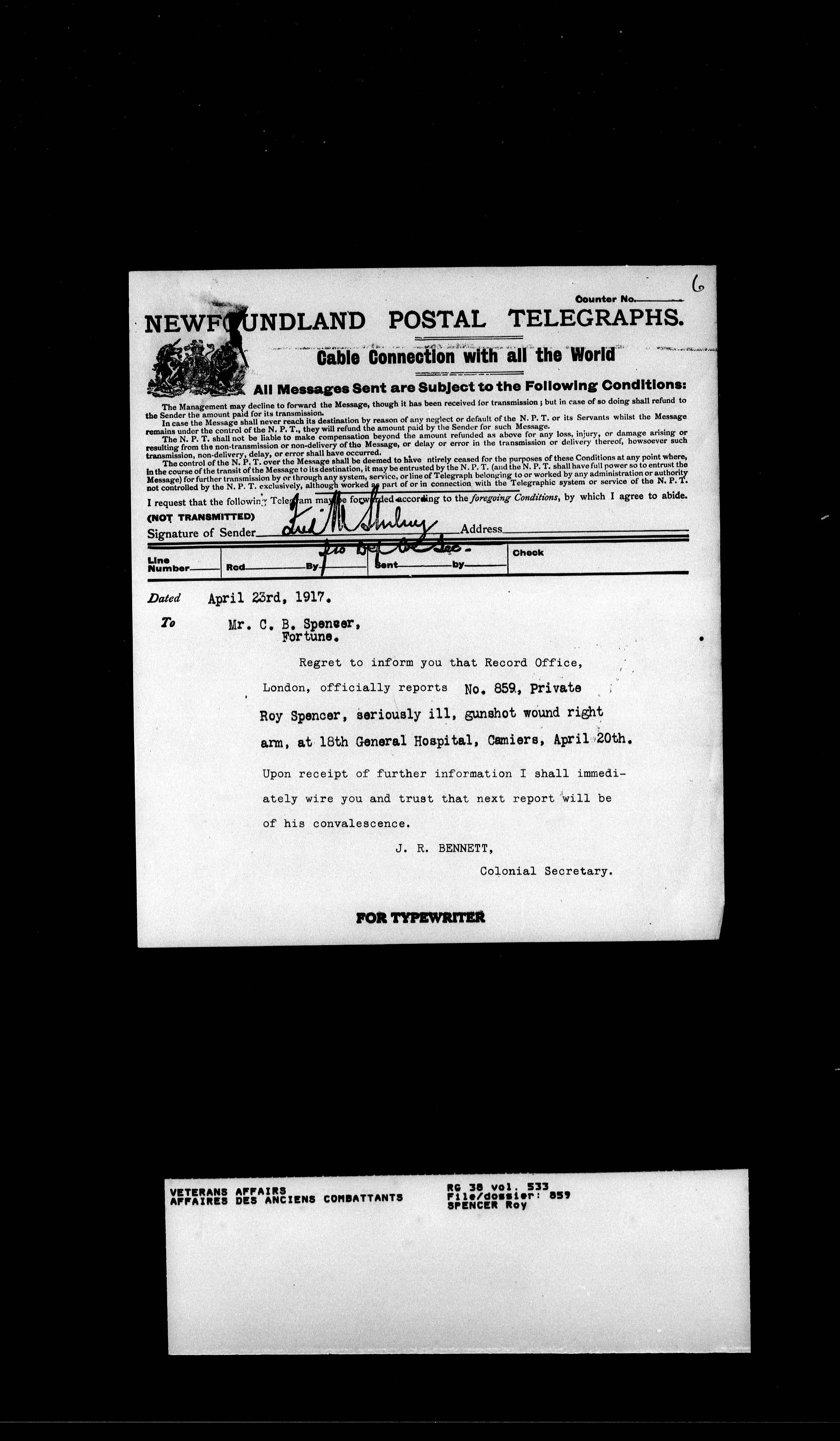 Military service files for members of the Royal Newfoundland Regiment and bandsmen and the Newfoundland Forestry Corps (1914-1919) - 18068