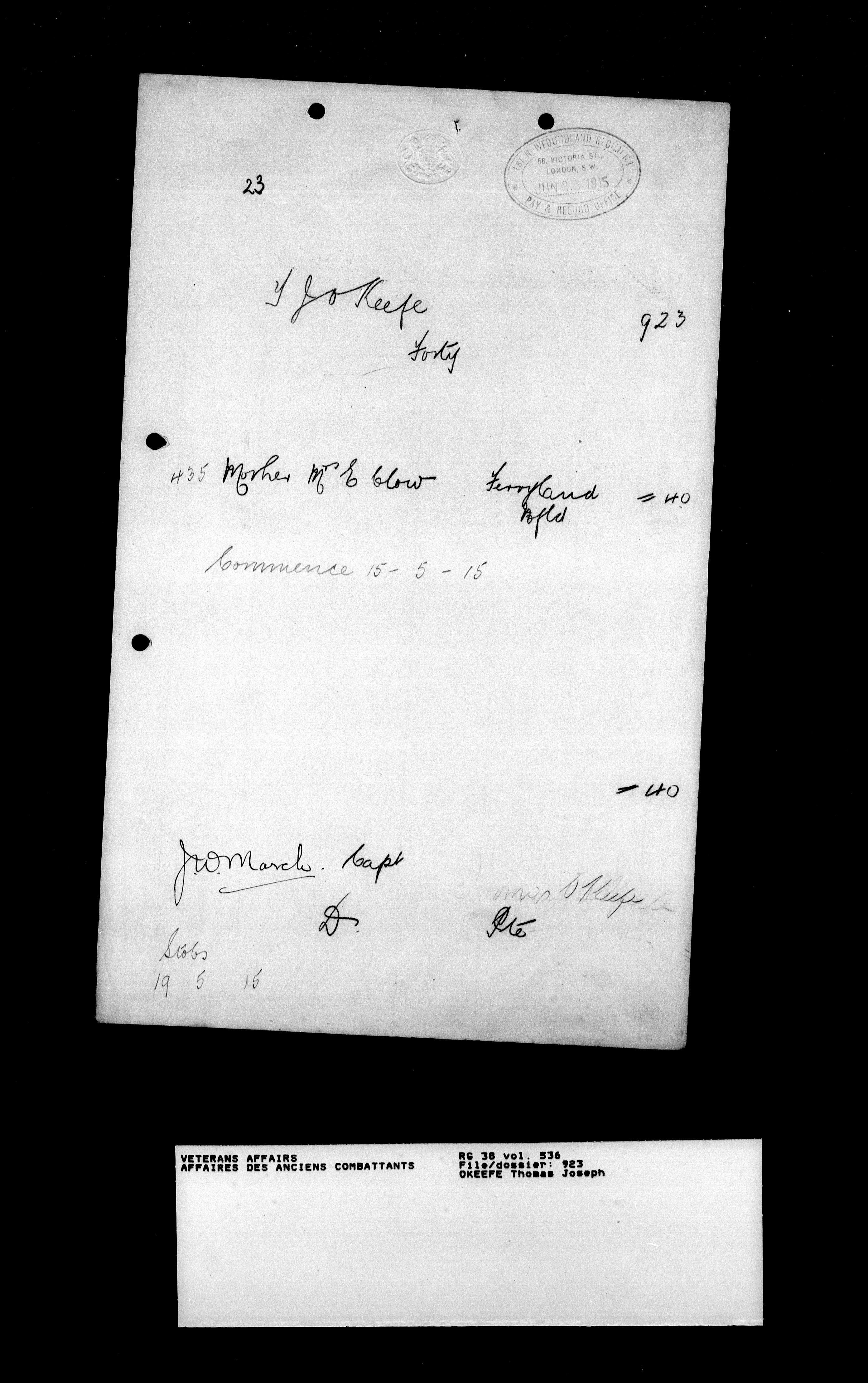 Military service files for members of the Royal Newfoundland Regiment and bandsmen and the Newfoundland Forestry Corps (1914-1919) - 18070