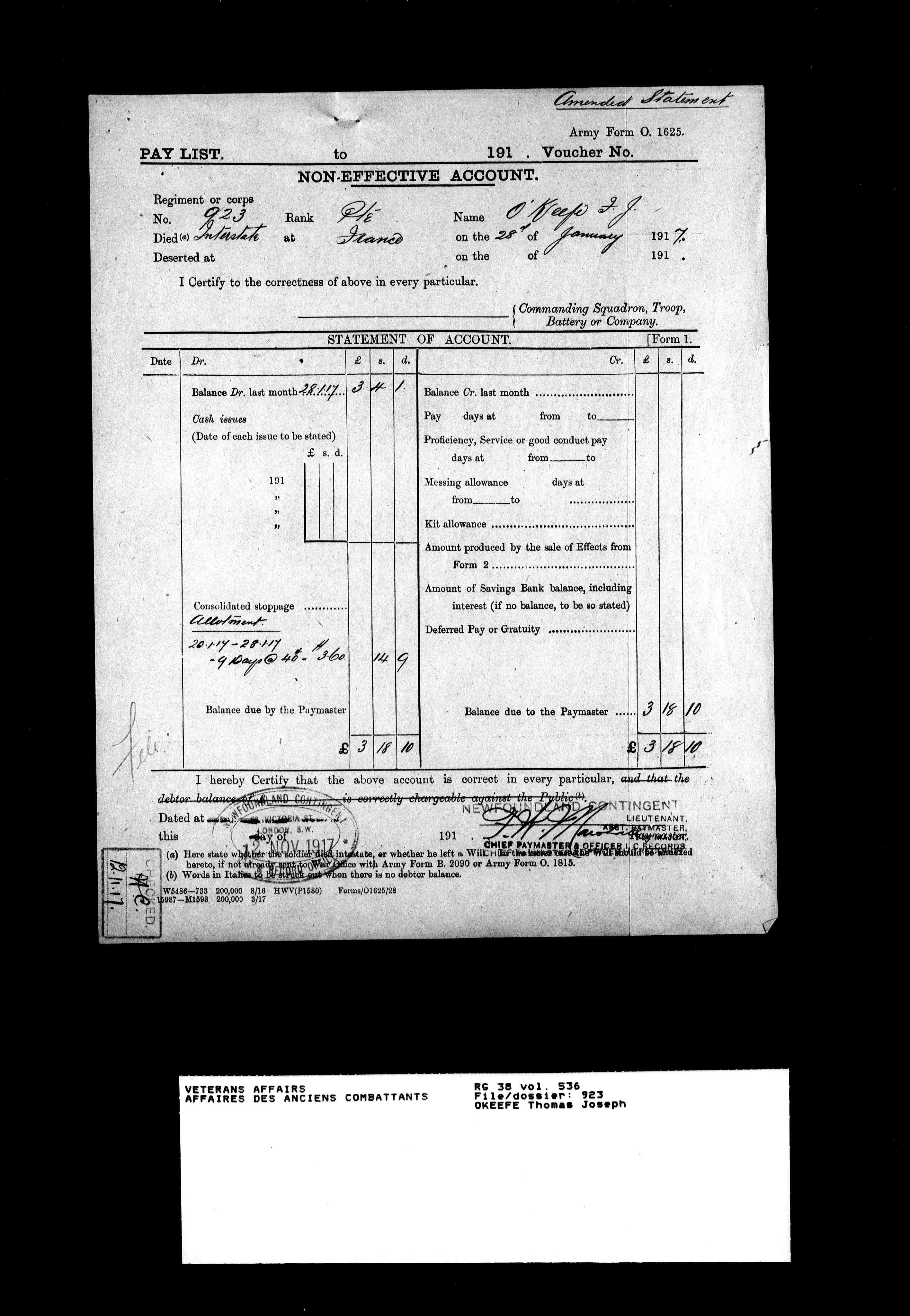 Military service files for members of the Royal Newfoundland Regiment and bandsmen and the Newfoundland Forestry Corps (1914-1919) - 18070