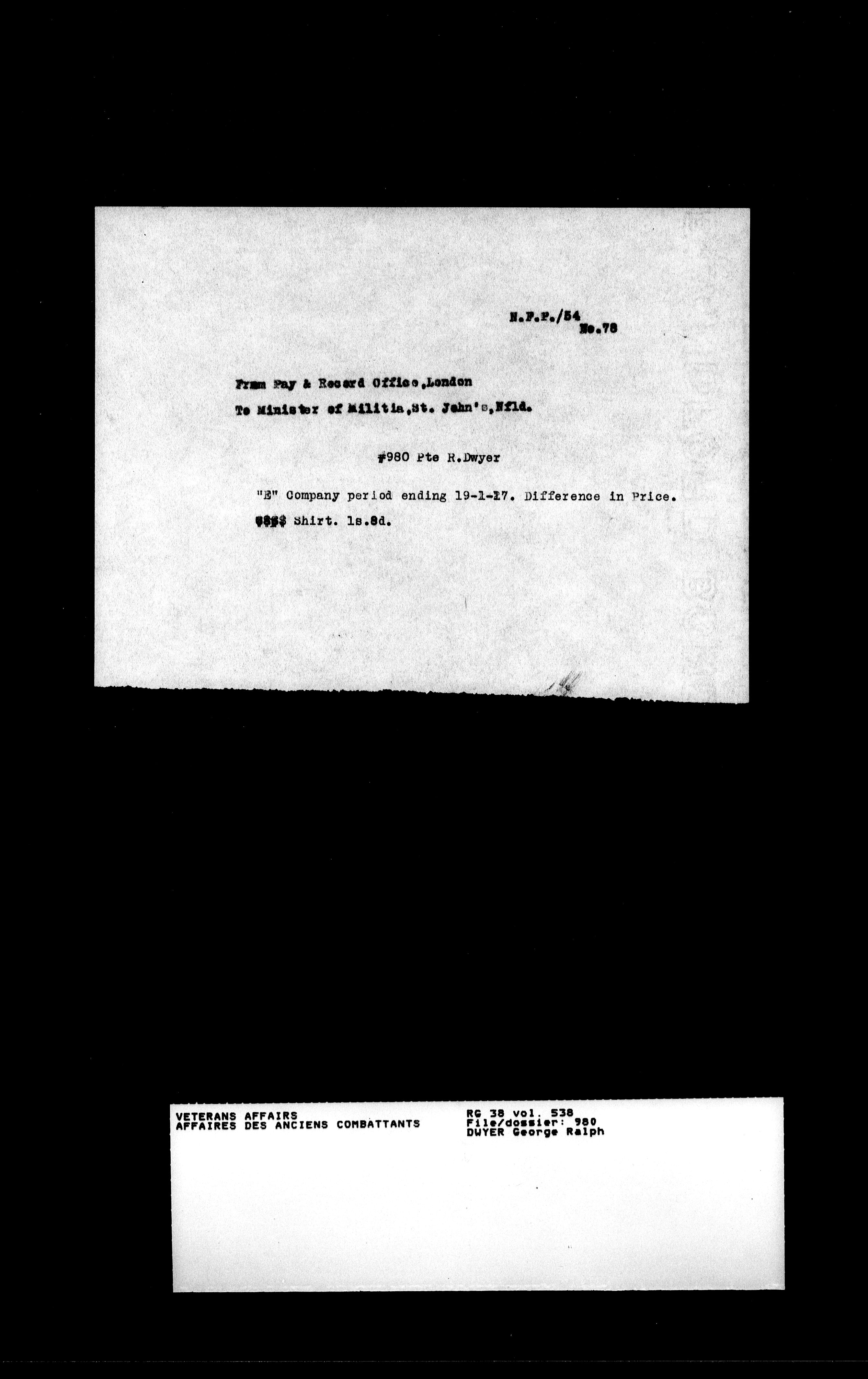 Military service files for members of the Royal Newfoundland Regiment and bandsmen and the Newfoundland Forestry Corps (1914-1919) - 18073