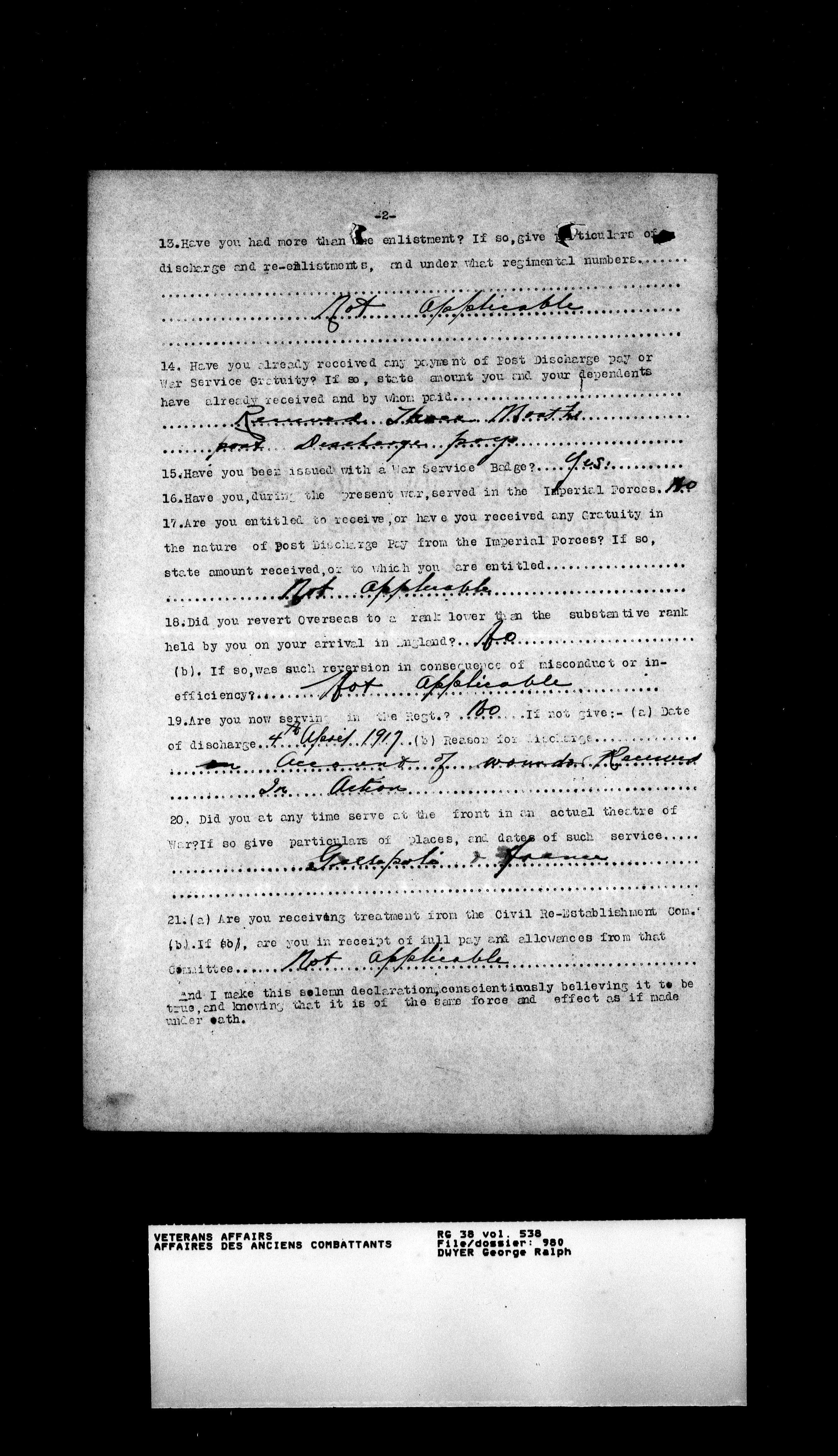 Military service files for members of the Royal Newfoundland Regiment and bandsmen and the Newfoundland Forestry Corps (1914-1919) - 18073