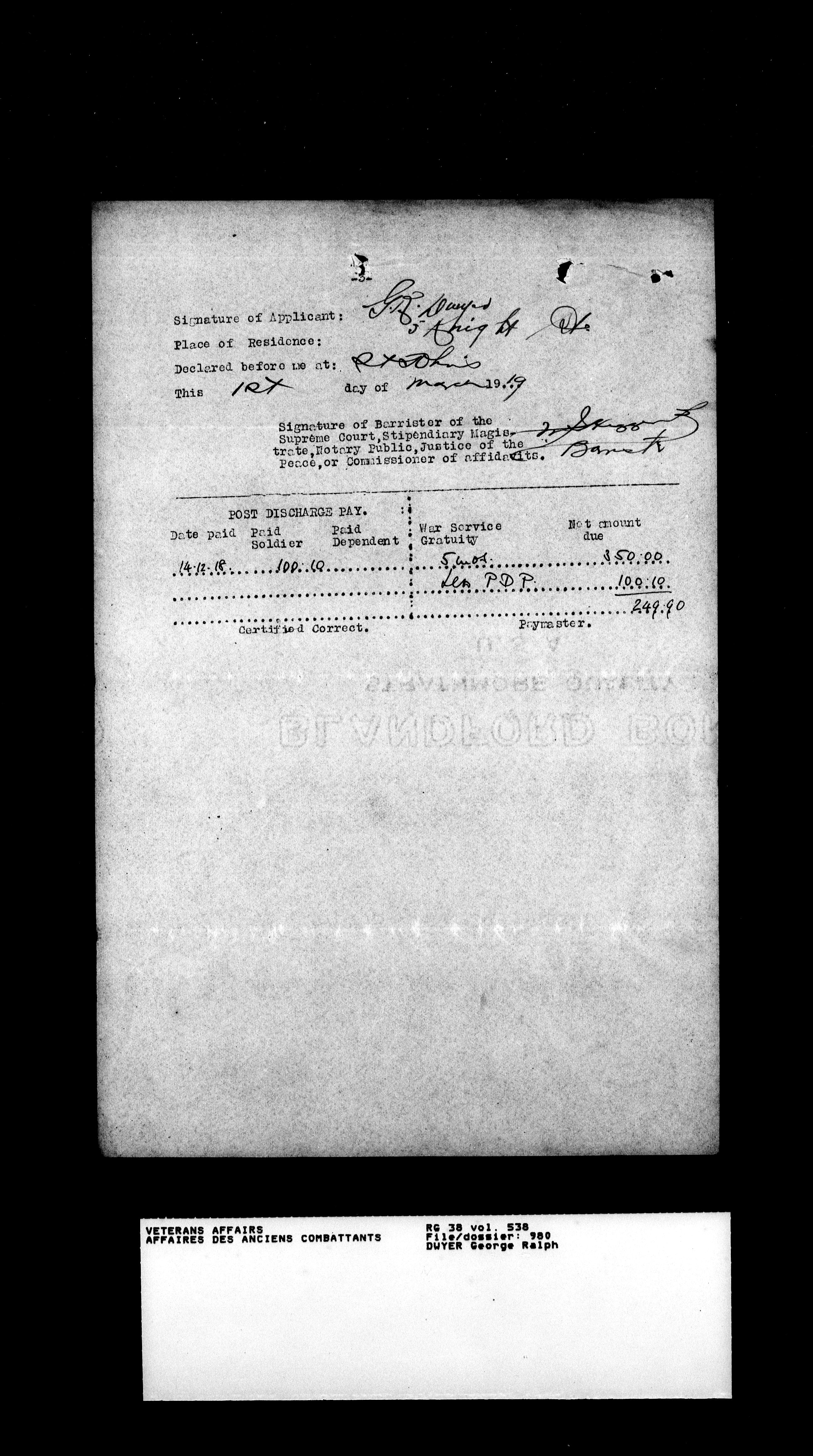 Military service files for members of the Royal Newfoundland Regiment and bandsmen and the Newfoundland Forestry Corps (1914-1919) - 18073
