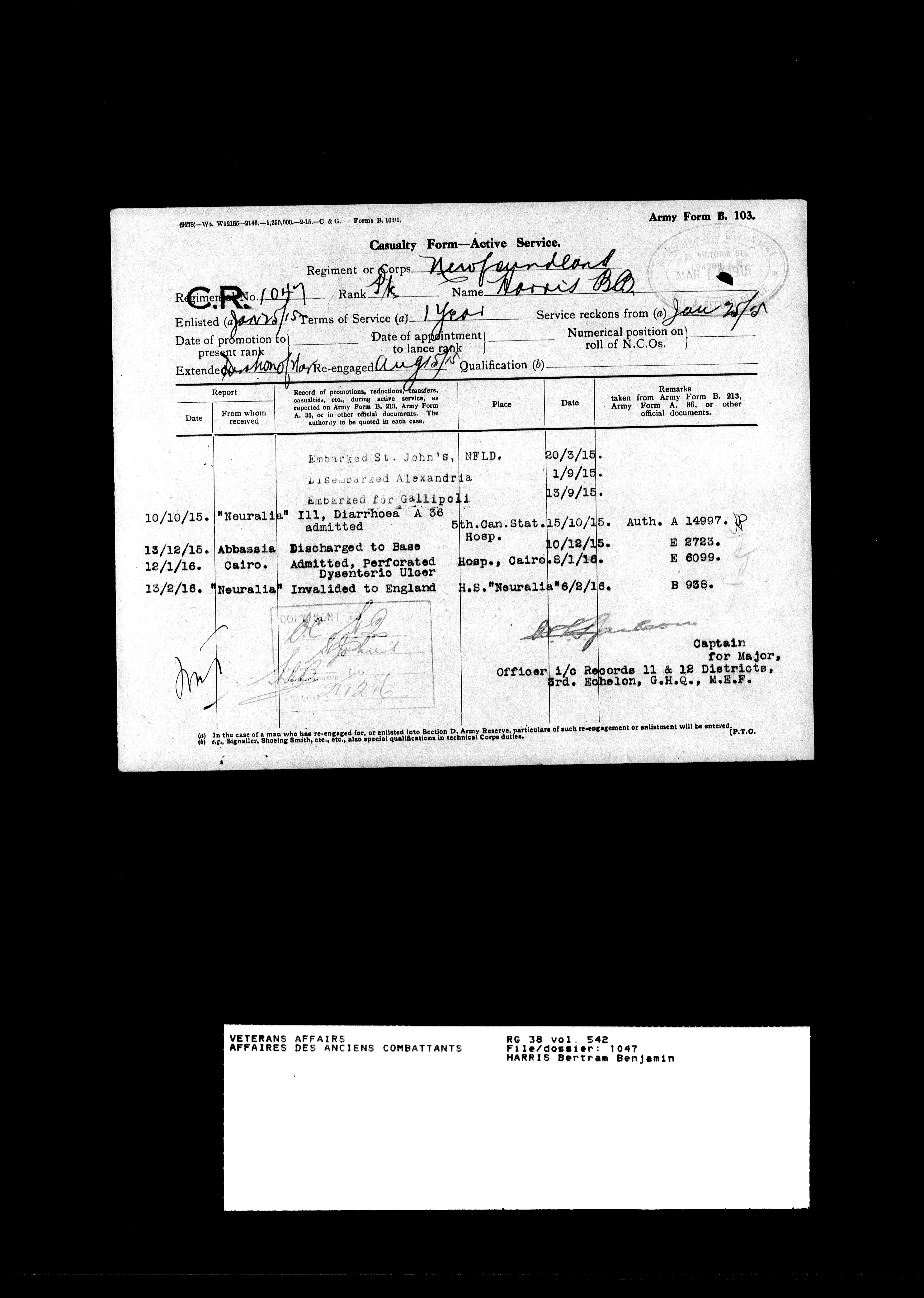 Military service files for members of the Royal Newfoundland Regiment and bandsmen and the Newfoundland Forestry Corps (1914-1919) - 18077