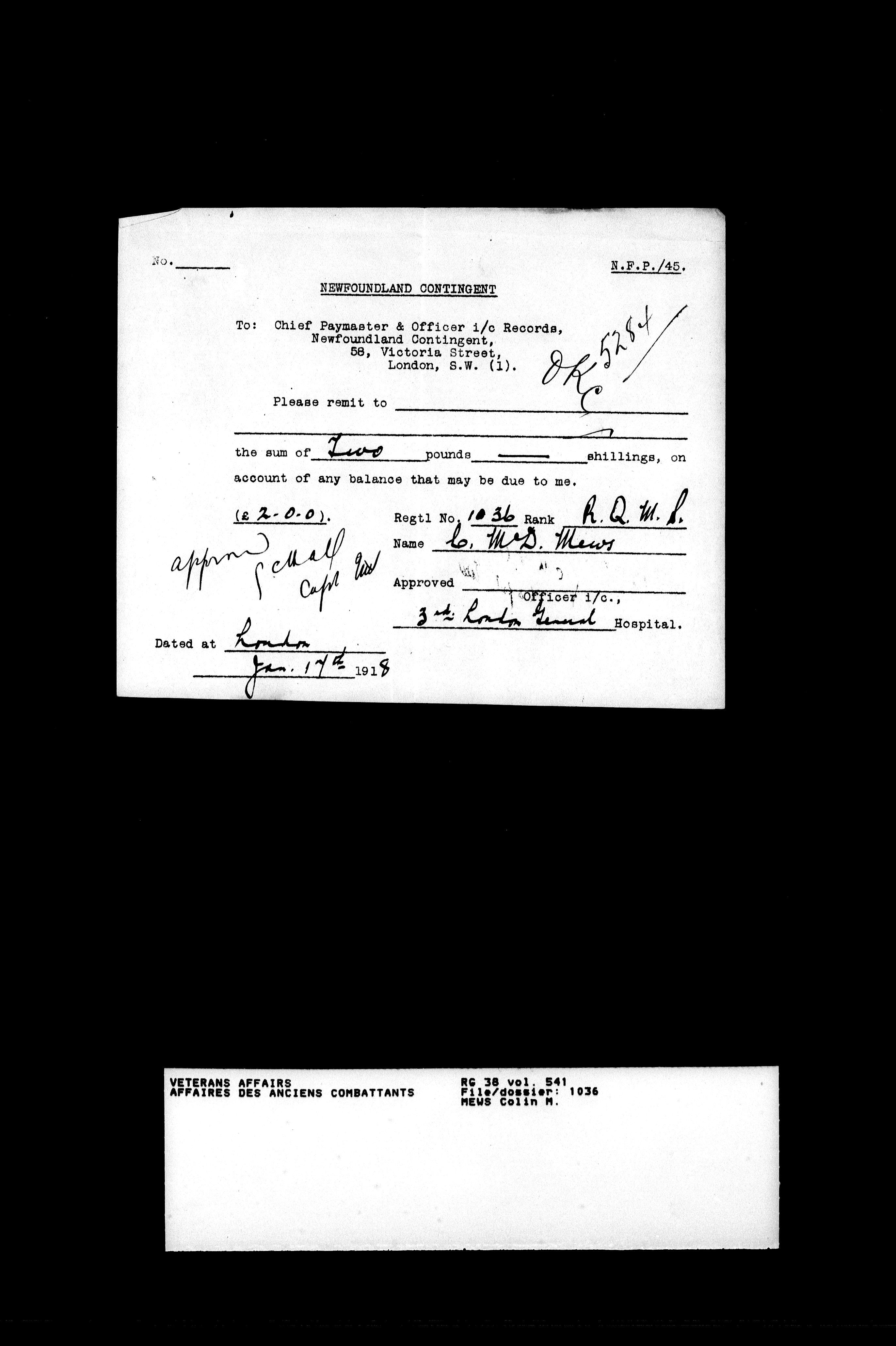 Military service files for members of the Royal Newfoundland Regiment and bandsmen and the Newfoundland Forestry Corps (1914-1919) - 18077