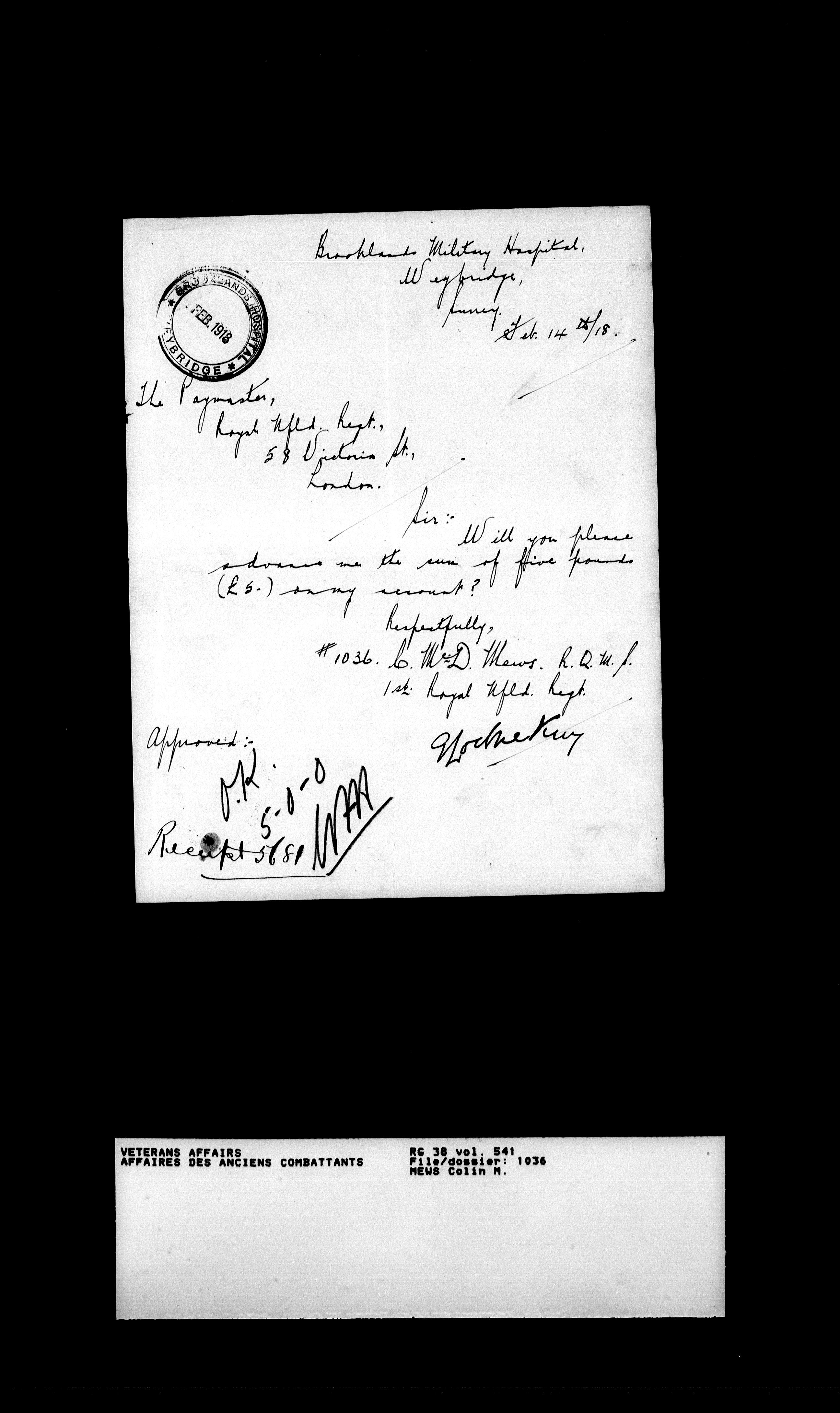 Military service files for members of the Royal Newfoundland Regiment and bandsmen and the Newfoundland Forestry Corps (1914-1919) - 18077