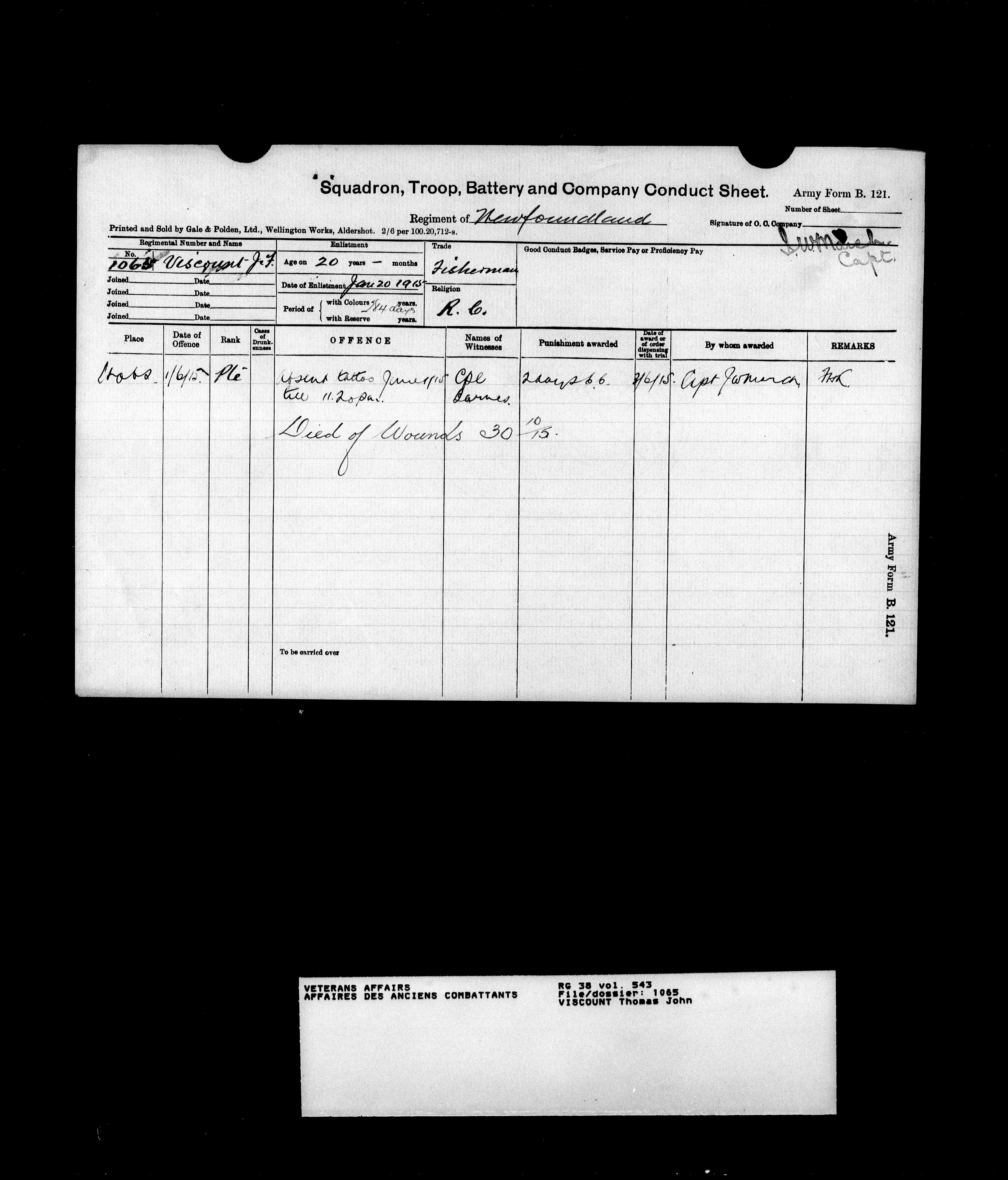 Military service files for members of the Royal Newfoundland Regiment and bandsmen and the Newfoundland Forestry Corps (1914-1919) - 18079