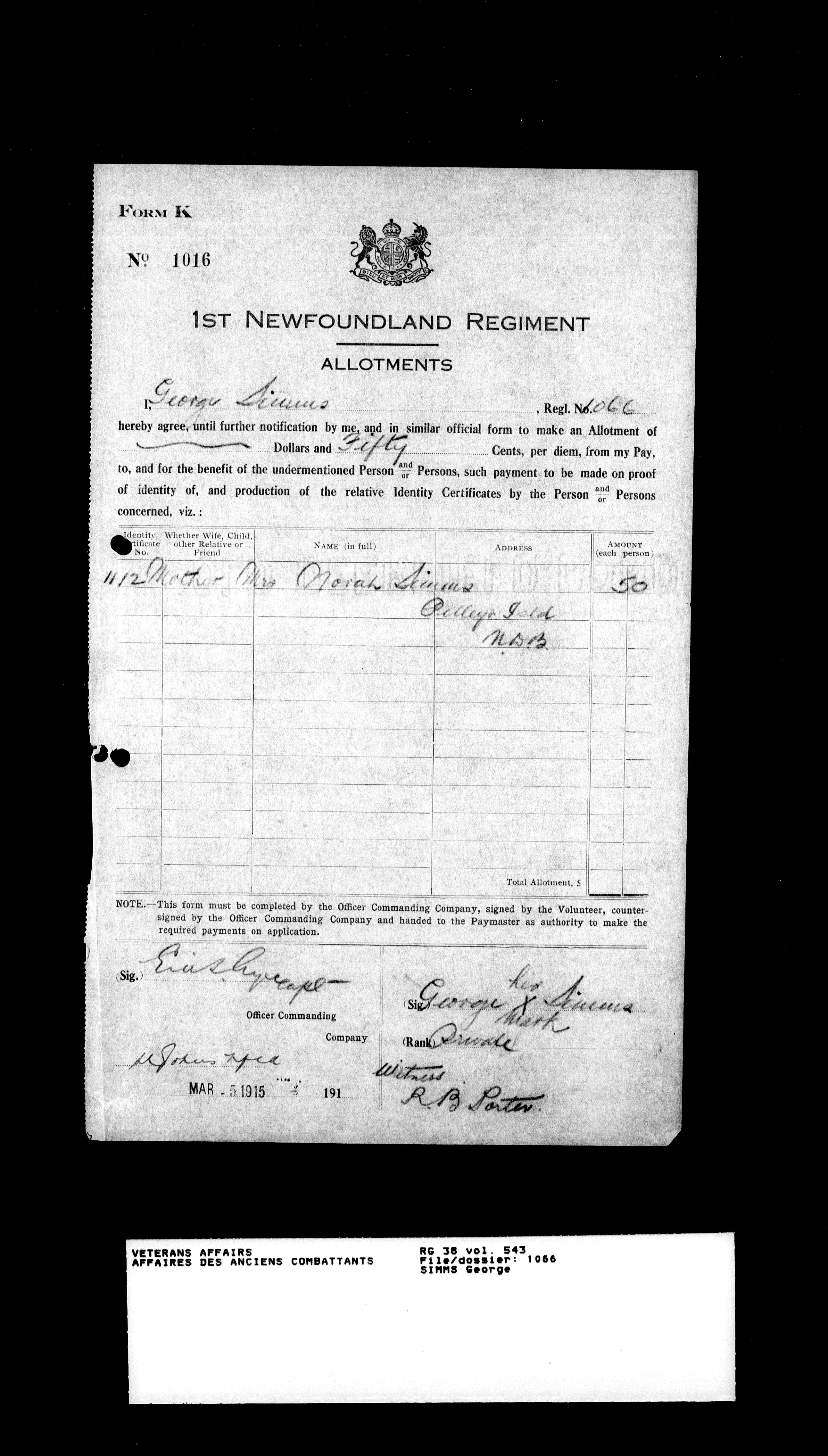 Military service files for members of the Royal Newfoundland Regiment and bandsmen and the Newfoundland Forestry Corps (1914-1919) - 18079