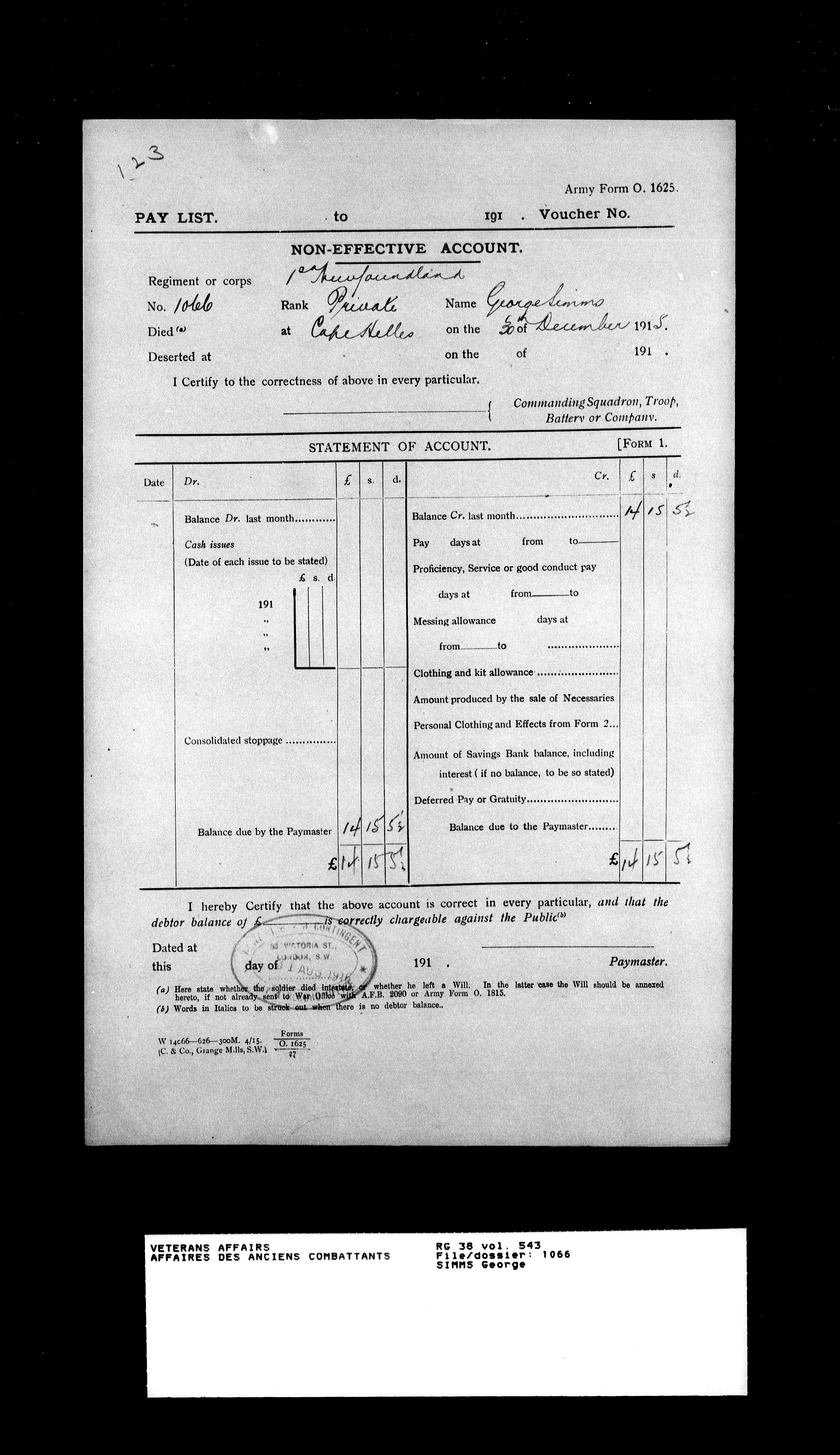Military service files for members of the Royal Newfoundland Regiment and bandsmen and the Newfoundland Forestry Corps (1914-1919) - 18079