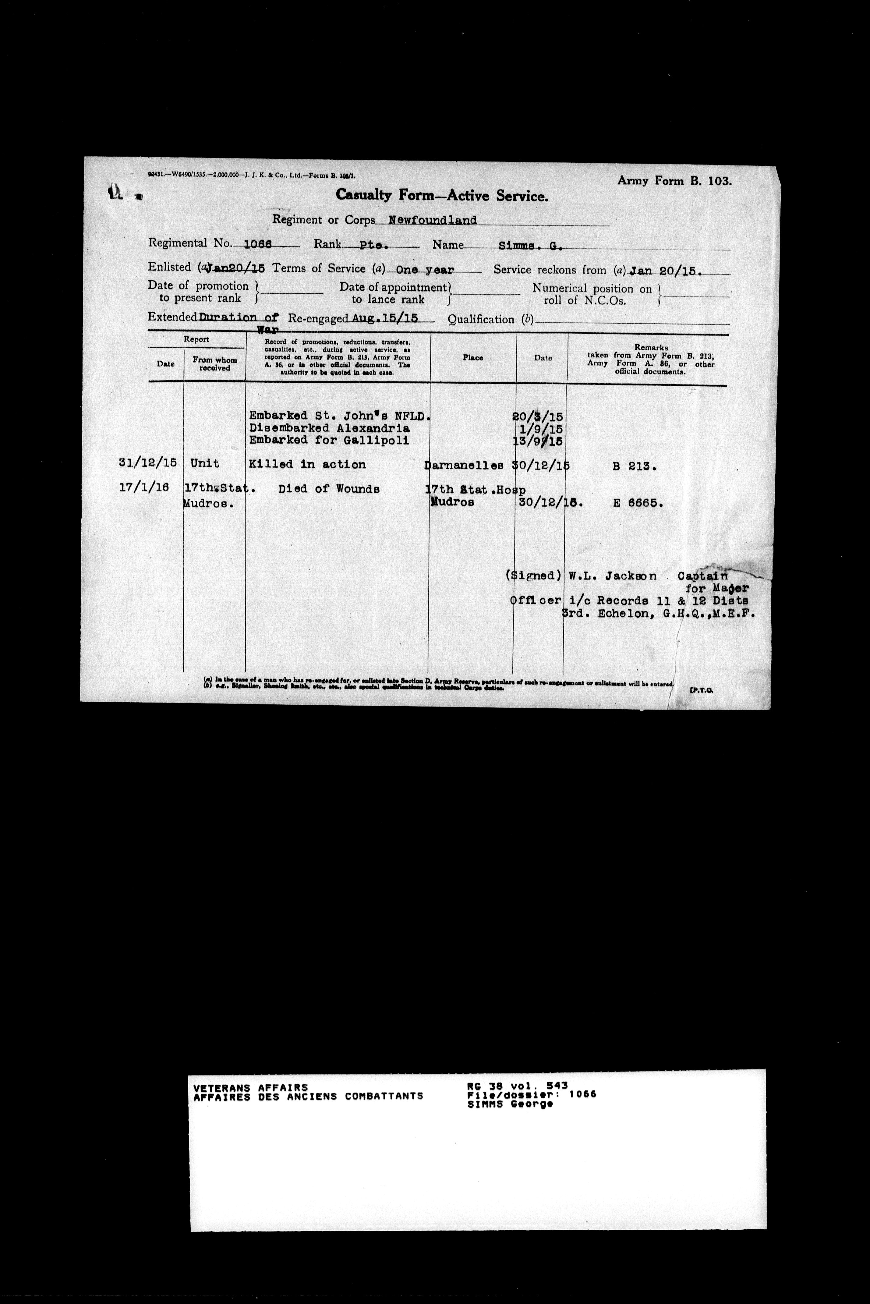 Military service files for members of the Royal Newfoundland Regiment and bandsmen and the Newfoundland Forestry Corps (1914-1919) - 18079