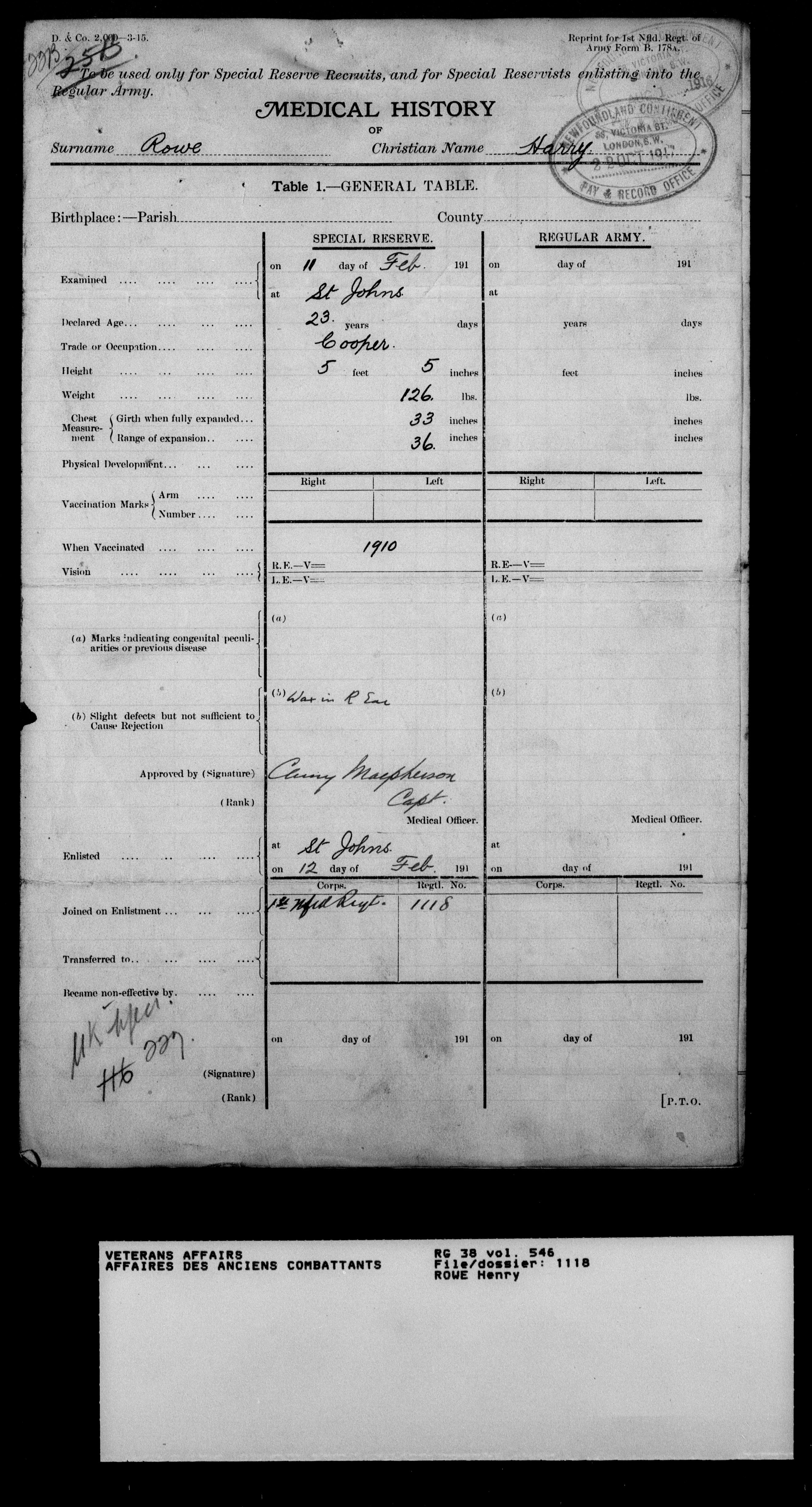Military service files for members of the Royal Newfoundland Regiment and bandsmen and the Newfoundland Forestry Corps (1914-1919) - 18081